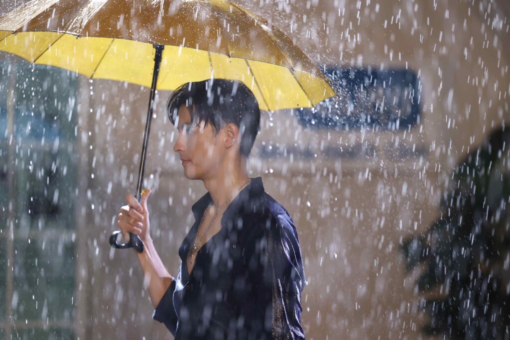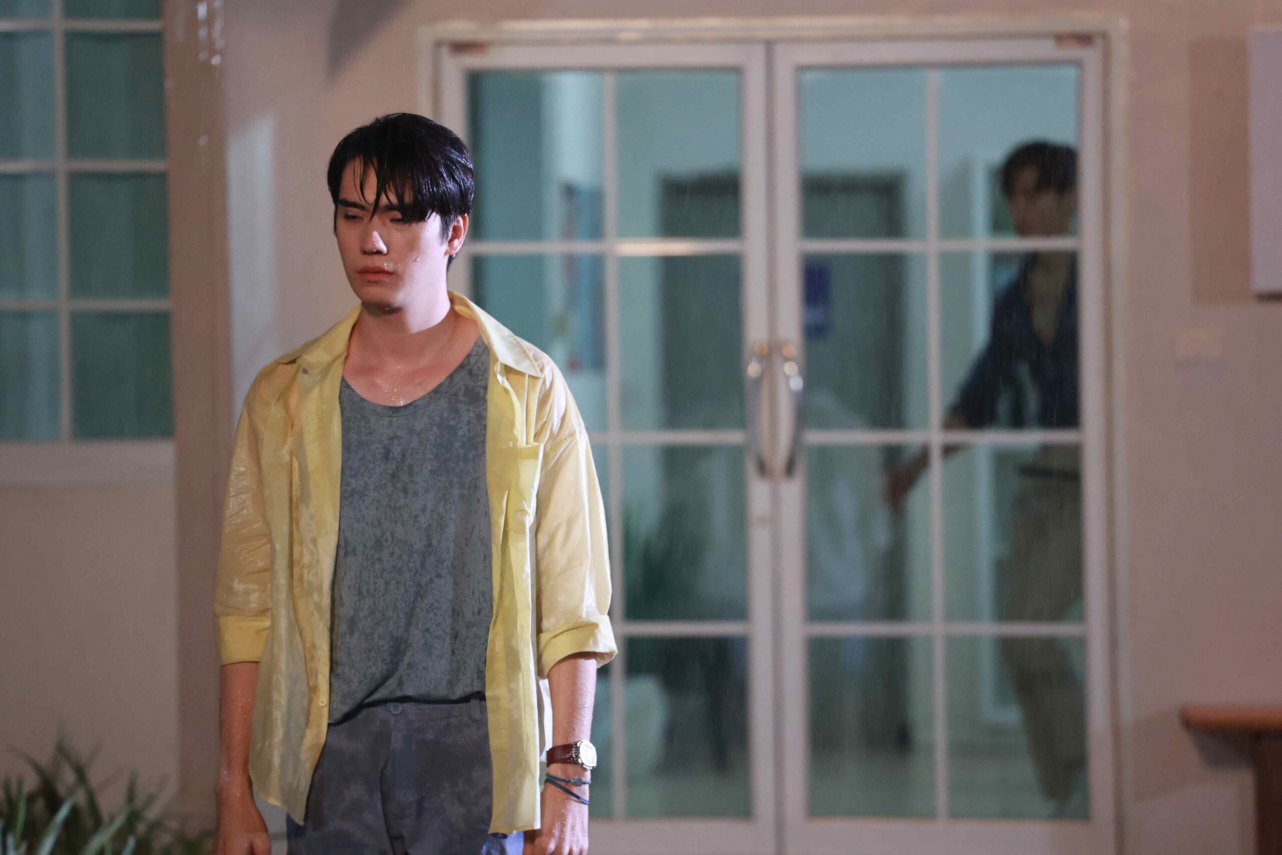 บรรยากาศเบื้องหลังฉากนี้ไม่ง่าย เพราะต้องใช้ฝนเทียมถ่ายทำหลายเทค นักแสดงต้องเปียกจริง หนาวจริง และเล่นอารมณ์จริงทุกครั้ง โดยมี พี่กอล์ฟ ธัญญ์วาริน สุขะพิสิษฐ์ ผู้กำกับ คอยดูรายละเอียดอย่างใกล้ชิด ทั้งจังหวะสายตา ระยะการเข้าใกล้ และระดับอารมณ์ที่ต้องค่อย ๆ ดันขึ้นจนถึงจุดพีค เพื่อให้ฉากออกมาสมจริงที่สุด ซึ่งทั้งมาสุและตี๋ทุ่มเทเต็มที่ในทุกเทค จนได้ฉากที่ทั้งสวยงามและเต็มไปด้วยพลังความรู้สึก