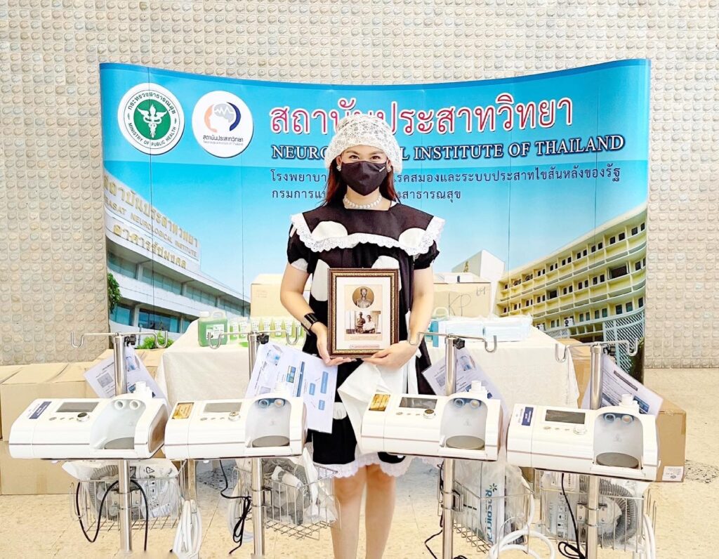 หมิง จิรกิติยา & สน ยุกต์ พร้อมเหล่าผู้ใจบุญมอบเครื่องช่วยหายใจ พร้อมเจลแอลกอฮอล์ให้แก่เหล่าบุคลากรทางการแพทย์ สถาบันประสาทวิทยา