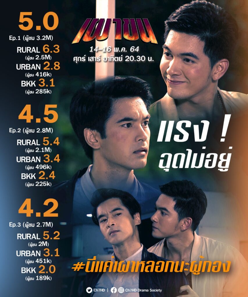 สมกับการรอคอยสำหรับละคร โรแมนติกแอ็กชั่น เผาขน ทางช่อง 7HD หลังออกอากาศสตาร์ตสัปดาห์แรก ก็เปิดตัวสุดแรง ด้วยเรตติ้งตอนแรกสูงถึง 5.0 ผู้ชมกว่า 3.2 ล้านคน (ข้อมูลจากเอจีบี นีลเส็น ประเทศไทย) จึงถือเป็นละครหลังข่าวที่เปิดตัวเรตติ้งสูงสุดของปีนี้ไปทันที งานนี้ 2 พระเอก “เข้ม” หัสวีร์ ภัคพงษ์ไพศาล และ “อ๊อฟ” ชนะพล สัตยา ยิ้มไม่หุบ เปิดใจขอขอบคุณแฟนละครที่ให้การสนับสนุนและส่งกำลังใจมาให้กันทุกช่องทาง