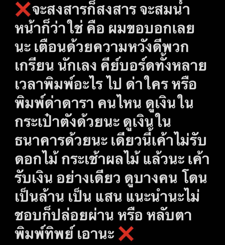 ปริ๊ด! “แทค ภรัณยู” เตือนเกรียนคีย์บอร์ดด่าใครดูเงินในธนาคารด้วย