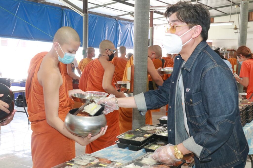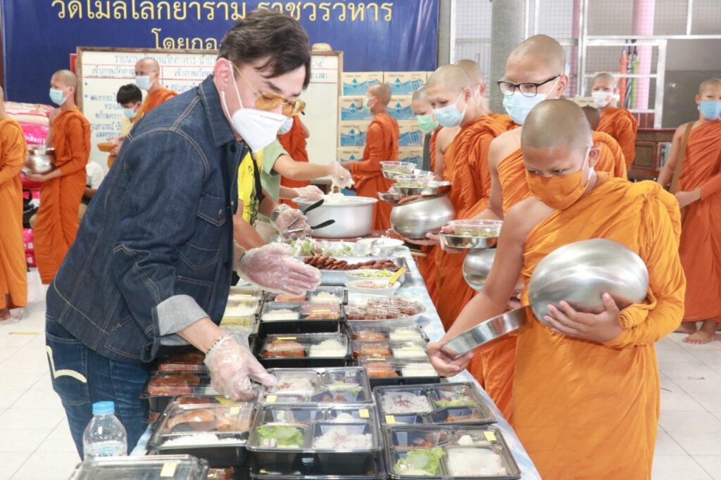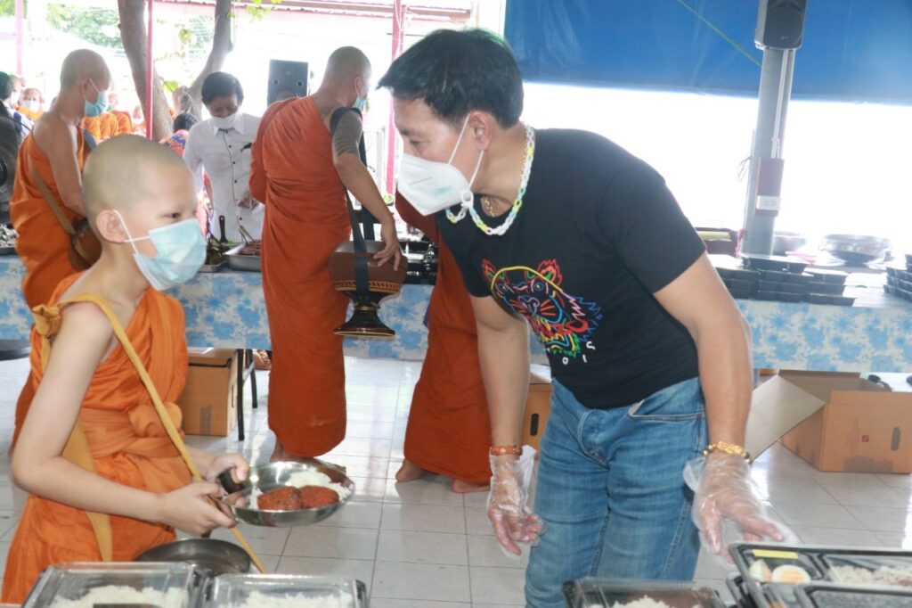 โดยในการนี้เนื่องในวันคล้ายวันเกิดครบ ๕๙ ปี พระเอกคู่แฝดฮีโร่ขวัญใจชาวไทย ท็อป-ไทด์ บิณฑ์ และเอกพันธ์ บรรลือฤทธิ์ ได้มาร่วมทำบุญเลี้ยงอาหารเพลพระภิกษุ สามเณร จำนวน 450 รูป ด้วยความสนับสนุนจากบริษัทโคลีเซี่ยม อินเตอร์กรุ๊ป นำโดย พรพิมล มั่นฤทัย ผู้ผลิตละคร “เผาขน” ออกอากาศทางช่อง ๗ เอชดี อาทิ ทองก้อน ศรีทับทิม ผู้กำกับการแสดง, จรัญน์ วงศ์สัจจะ โปรดิวเซอร์ และยังมี นีโน่-เมทนี บุรณศิริ ดารานักแสดง-พิธีกร มาร่วมทำบุญภายในงานดังกล่าว