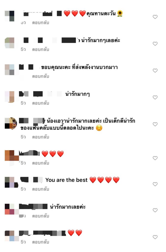 ซึ่งล่าสุด สาวเอวา ได้โพสต์คลิปภาพสุดประทับลงในอินสตราแกรมส่วนตัว sunflowava ที่เจ้าตัวให้ความเอ็นดู น้องหยก ลูกสาวของ รปภ.ที่คอยรักษาความปลอดภัยบ้านของ เอวา งานนี้ก็เลยตอบแทนด้วยการขอทำหน้าที่เป็นเพื่อนและพี่เลี้ยงให้ น้องหยก หนึ่งวันพร้อมยังมอบของเล็กๆน้อยๆเป็นตุ๊กตา พร้อมกระเป๋า และดูแลเทคแคร์สร้างรอยยิ้มจนได้ใจ น้องหยก ไปเต็มๆแล้ว สาวเอวา ยังได้รับเสียงตบมือพร้อมคำชื่นชมจากแฟนๆในความไม่ถือตัวสมแล้วที่ สาวเอวา ถูกสอนมาเสมอจนจำขึ้นใจว่าทุกคนนั้นเท่าเทียมกันเราจึงต้องแบ่งปันสร้างความสุขให้กัน