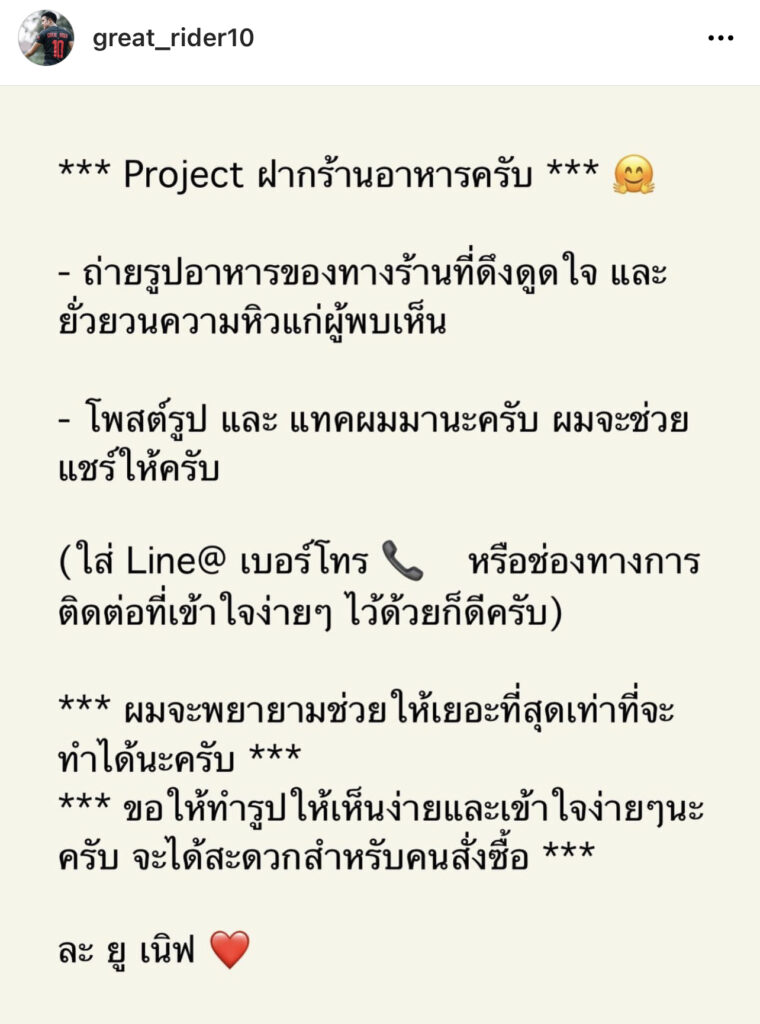 ล่าสุดนักแสดงมาดเข้ม “เกรท วรินทร” ก็ขอเป็นส่วนหนึ่งที่ออกมาโพสต์ผ่านไอจีให้ร้านค้าที่ได้รับผลกระทบสามารถฝากร้านได้และจะช่วยแชร์ให้คนเข้ามาซื้อเยอะเท่าที่ทำได้