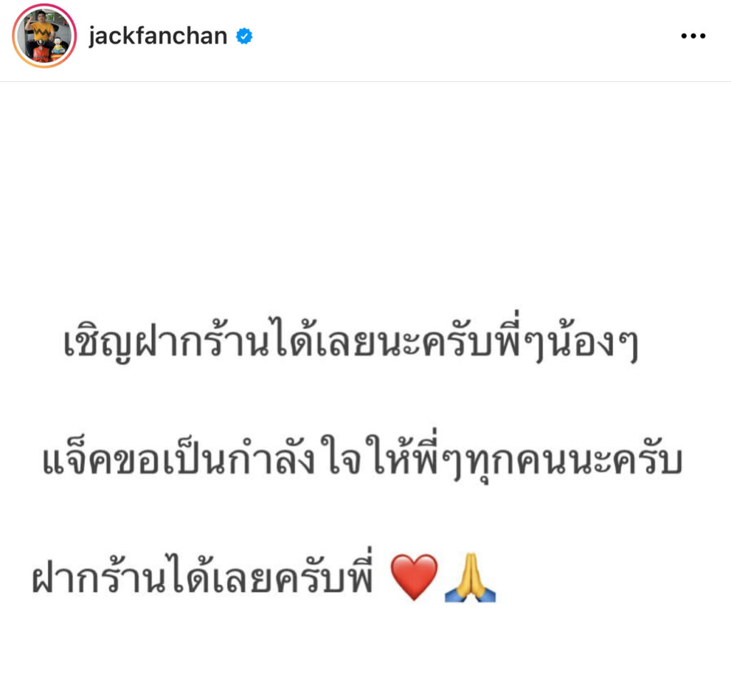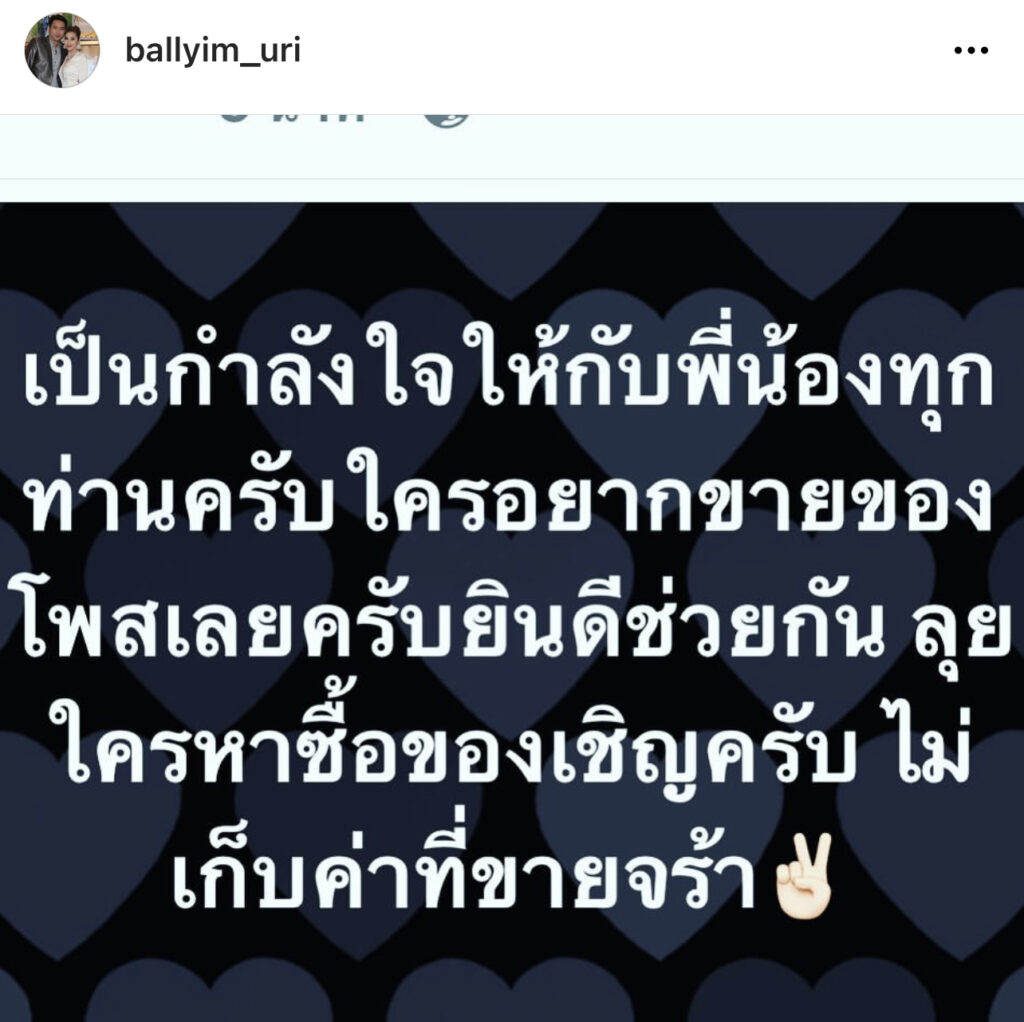 นักแสดงตลกดัง “บอล เชิญยิ้ม” ก็โพสต์ทั้งเฟซบุ๊กและไอจี “เป็นกำลังใจให้พี่น้องทุกท่านครับ ใครอยากขายของโพสต์เลยครับ ยินช่วยกัน ลุย ใครหาซื้อของเชิญครับ ไม่เก็บค่าที่ขายจ้า”