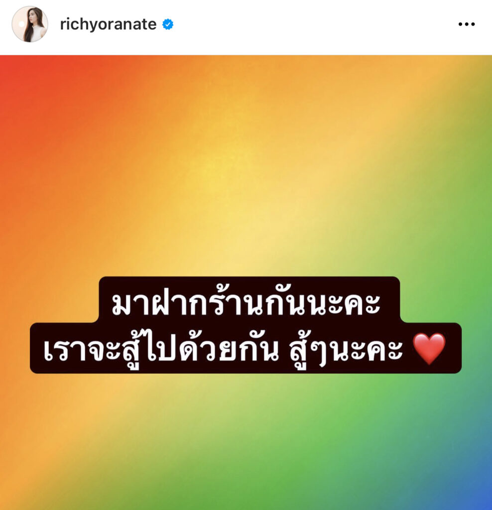 ได้โพสต์ว่า “มาฝากร้านกันนะคะ เราจะสู้ไปด้วยกัน สู้ๆนะคะ“