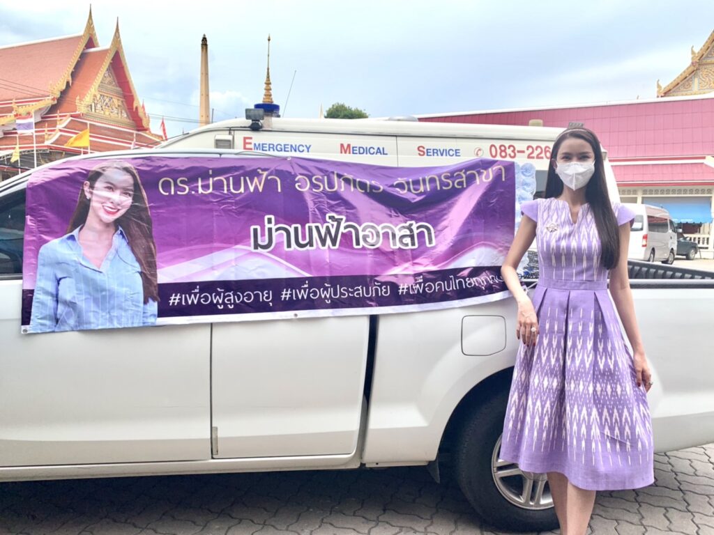 และในวันนี้ “ดร.ม่านฟ้า จันทรสาขา” ไม่รีรอที่จะรีบเดินทางเพื่อไปเยี่ยมประชาชนอีกครั้ง ณ วัดบางพลีใหญ่ใน อำเภอบางพลี จังหวัดสมุทรปราการ พร้อมทั้งนำน้ำดื่ม เจลแอลกอฮอล์ และหน้ากากอนามัย เพื่อมอบให้ประชาชนที่มาพักอาศัยชั่วคราว พร้อมทั้งแสดงความเสียใจกับครอบครัวของอาสาสมัครกู้ชีพที่เสียชีวิตขณะปฎิบัติหน้าที่ และให้กำลังใจกับเจ้าหน้าที่ทุกฝ่าย ทั้งในส่วนกลาง ส่วนภูมิภาค และส่วนท้องถิ่น ที่ได้ลงมาปฎิบัติหน้าที่อย่างเต็มกำลังความสามารถและยังต้องมีภารกิจต่อไปอีกจนกว่าสถานการณ์จะคลี่คลายทั้งหมด
