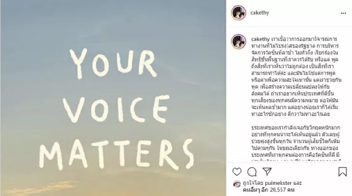 เราเสียเวลาชีวิตในช่วงที่ควรจะสนุกที่สุดไป แค่นี้เราก็โกรธมากแล้ว แต่ยังมีคนอีกมากมายที่สูญเสียมากกว่านี้ ไหนจะกิจการต่างๆที่ต้องปิดตัวลงเพราะยื้อเวลาต่อไปไม่ไหว เศรษฐกิจก็ย่ำแย่ ตัวเลขผู้เสียชีวิตที่เราได้เห็นทุกวันมันก็ไม่ใช่แค่ตัวเลข แต่เป็นชีวิตคนคนนึงที่ต้องเสียไป ไม่ใช่แค่เพราะโรคระบาด แต่เพราะต้นตอมาจากการบริหารจัดการที่ล้มเหลว ออกมาใช้เสียงของทุกคนกันค่ะ และหวังว่าวันนึงเราจะได้เห็นการเปลี่ยนแปลงไปด้วยกัน 🤍“