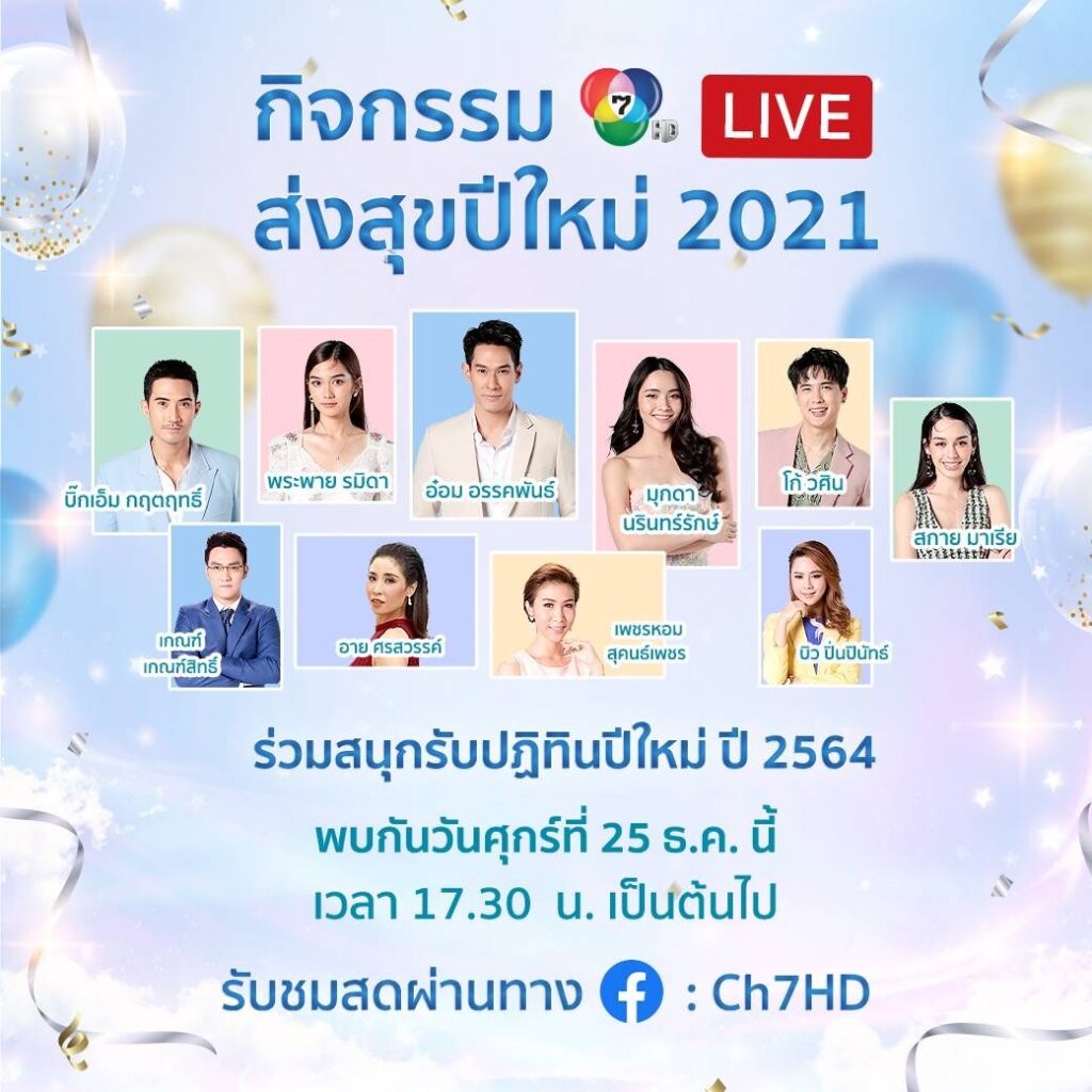 และเพื่อเป็นการร่วมส่งความสุขต้อนรับปีใหม่ ช่อง 7HD ขอส่งมอบปฏิทินจากใจในรูปแบบใหม่ในกิจกรรม 7HD Live ส่งสุขปีใหม่ 2021 ผ่าน Facebook Live Fanpage : Ch7HD ในวันศุกร์ที่ 25 ธ.ค.นี้ ตั้งแต่เวลา 17.30 น. เป็นต้นไป พบกับนักแสดงสุดปัง อ๋อม อรรคพันธ์, บิ๊กเอ็ม กฤตฤทธิ์, มุกดา นรินทร์รักษ์, โก้ วศิน, พระพาย รมิดา, สกาย มาเรีย พร้อมด้วยผู้ประกาศข่าว ศรสวรรค์ ภู่วิจิตร, สุคนธ์เพชร ผลประดิษฐานนท์, ปิ่นปินัทธ์ ฐากุลวีรนันท์ และเกณฑ์สิทธิ์ กันธจันทร์ มาร่วมส่งความสุข แจกปฏิทินรวม 1,000 ฉบับ และพิเศษสุด ๆ พร้อมลายเซ็นเพียง 100 ฉบับ แฟน ๆ ผู้สนใจรับปฏิทิน ปี 2564 อย่าพลาด