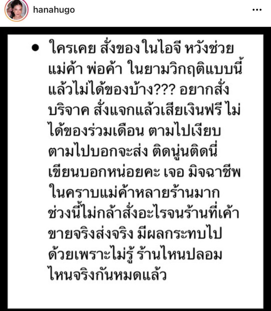 “ใครเคย สั่งของในไอจี หวังช่วยแม่ค้า พ่อค้า ในยามวิกฤตแบบนี้แล้วไม่ได้ของบ้าง??? อยากสั่งบริจาค สั่งแจกแล้วเสียเงินฟรี ไม่ได้ของร่วมเดือน ตามไปเงียบ ตามไปบอกจะส่ง ติดนู่นติดนี่ เขียนบอกหน่อยคะ เจอ มิจฉาชีพในคราบแม่ค้าหลายร้านมาก ช่วงนี้ไม่กล้าสั่งอะไรจนร้านที่เค้าขายจริงส่งจริง มีผลกระทบไปด้วยเพราะไม่รู้ ร้านไหนปลอมไหนจริงกันหมดแล้ว !!! จะเริ่มประจานแล้วนะจ๊ะ ใครยังไม่ส่งอะไร ส่งด่วน ถ้าไม่ส่ง จะเริ่มประจานพรุ่งนี้ ว่ามีร้านไหนบ้างรอมาเป็นเดือนละคะ เก็บข้อมูลไว้หมด บางร้านตอนนี้จะ20วัน ถามไปก็อ้างนั่นนี่ อย่าให้ต้องไปแจ้งความเลยจ้า อย่าหาทำ แม่ค้าเค้าเดือดร้อนกันเยอะแยะ อยากขายของ ทางทำมาหากินเค้า เค้ามีของส่งจริง ซื่อสัตย์กับอาชีพ ตัวเองโดนมาก็กลัวไม่กล้าซื้ออะไรละคะ ช่วงนี้ถ้าแม่งดสั่งอะไร เข้าใจแม่นะ ขอตามเคลียร์ มิจฉาชีพพวกนี้ก่อนคะ สั่งไปเยอะเจ็บมาแยะ กลัวคะ ตอนนี้ รับแต่มีแบบเก็บเงินปลายทางเท่านั้น เอาเงินเก็บไปทำบุญบริจาคคนดีกว่าให้คนพวกนี้ เพื่อนก็โดน ใครโดนบ้างช่วยกันลงนะจ๊ะ #อย่าหาทำ #มิจฉาชีพ #สั่งของหวังช่วยกลับโดนโกง“