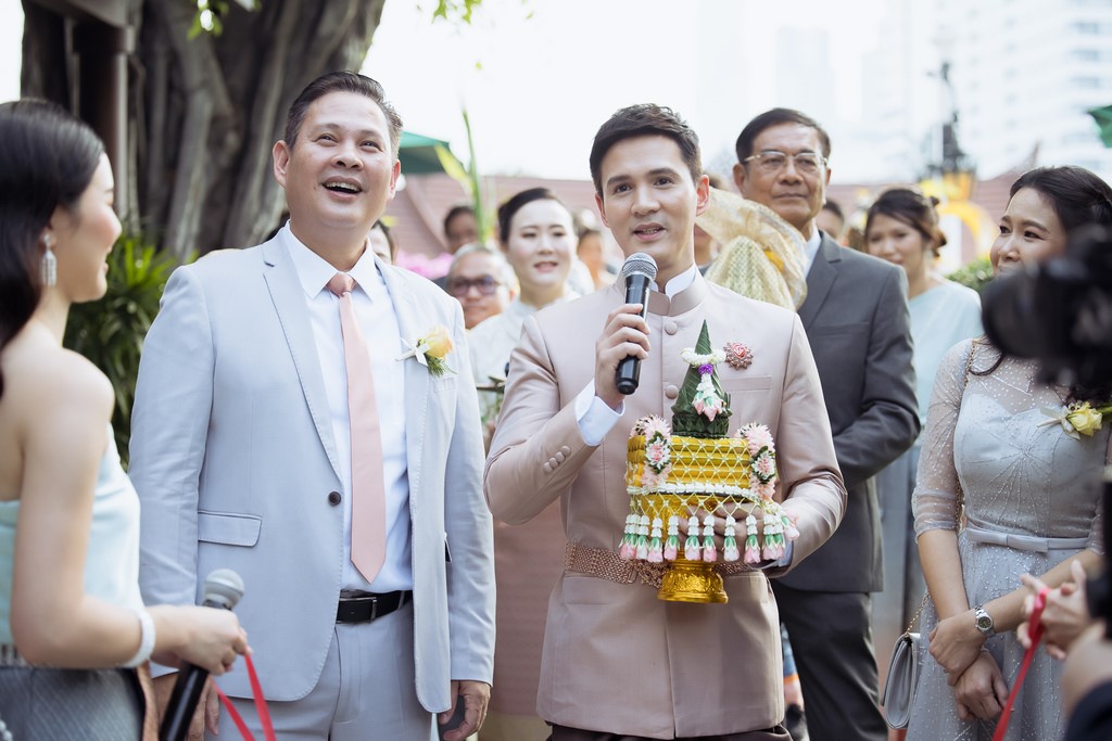 @@ พิธีตอนเช้าเป็นอย่างไรบ้าง เปปเปอร์ : ก็เป็นประเพณีไทยผสมจีน มีการไหว้พระ รับพร มีพิธีสวดไทย และมีพิธียกน้ำชาแบบจีนด้วย ครีม: ก็จะผสมผสานสองอย่าง เป็นไทยกับจีน ก็มีผู้ใหญ่มาให้พรเราเยอะ ซึ่งทำให้เรารู้สึกอบอุ่น ส่วนเรื่องเสียน้ำตาเราเสียน้ำตาตอนกั้นประตูเพราะขำมากกว่า คือเพื่อนจัดเต็มไลฟ์ให้ดูเจ้าสาวก็เลยได้ดูด้วย เปปเปอร์ : เราก็คุยกันเพราะเจ้าสาวก็อยู่อีกห้องหนึ่งเราก็เลยคิดว่างั้นก็ไลฟ์เลยก็แล้วกัน ไลฟ์เสร็จเจ้าสาวก็ได้ดูด้วย ผ่านเพจดร.รัฐศาสตร์ ซึ่งทุกอย่างสดหมด