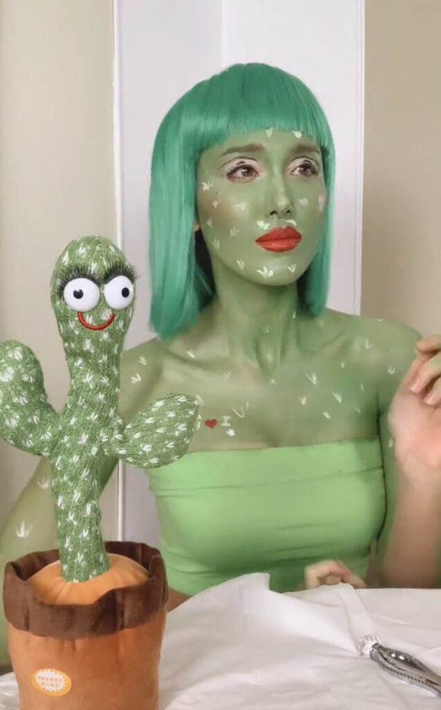 ล่าสุดทำเอาชาวเน็ตต้องขำจนปรอทแตกอีกครั้ง เมื่อสาว แจ็คกี้ ได้ไลฟ์สดผ่านไอจีแต่งตัวเป็น น้องบอง ทาหน้าทาตัวเป็นสีเขียว และแต่งหน้าให้ดูเป็นต้นกระบองเพชรมากที่สุด โดยเฉพาะตรงตาบอกเลยว่าได้มาก พร้อมยังเอาวิกผมสีเขียวมาใส่อีกด้วย บอกเลยว่ามองร่วมๆก็เหมือนอยู่นะ แต่เธอคนนี้ก็ไม่หยุดฮาแค่นี้ โดยสาวแจ็คกี้ได้จับมือ น้องบองเต้นเเพลงมัดซีนาบอน เรียกเสียงฮาได้เป็นอย่างดี จนชาวเน็ตกดชอบใจ ขำจนท้องแข็งกันกระจาย