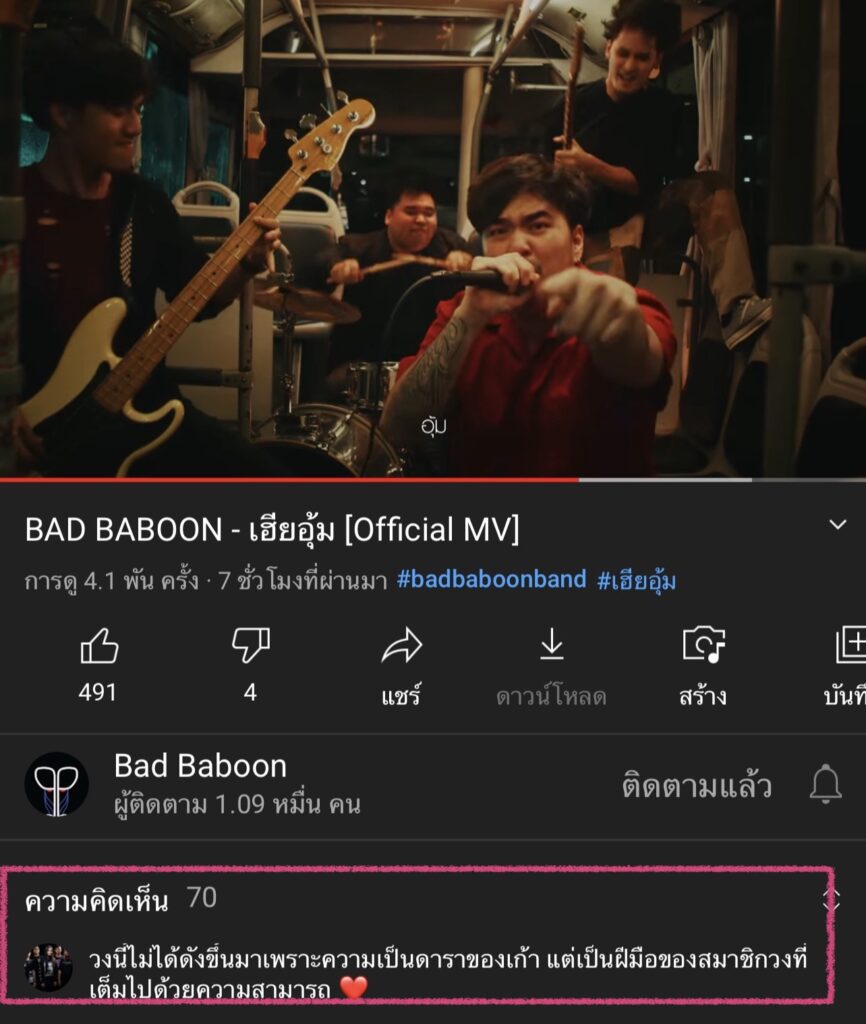 คอมเมนท์จากแฟนเพลงประโยคนี้ทำให้ เก้า จิรายุ ภูมิใจในการสร้างวงที่ชื่อว่า  Bad Baboon