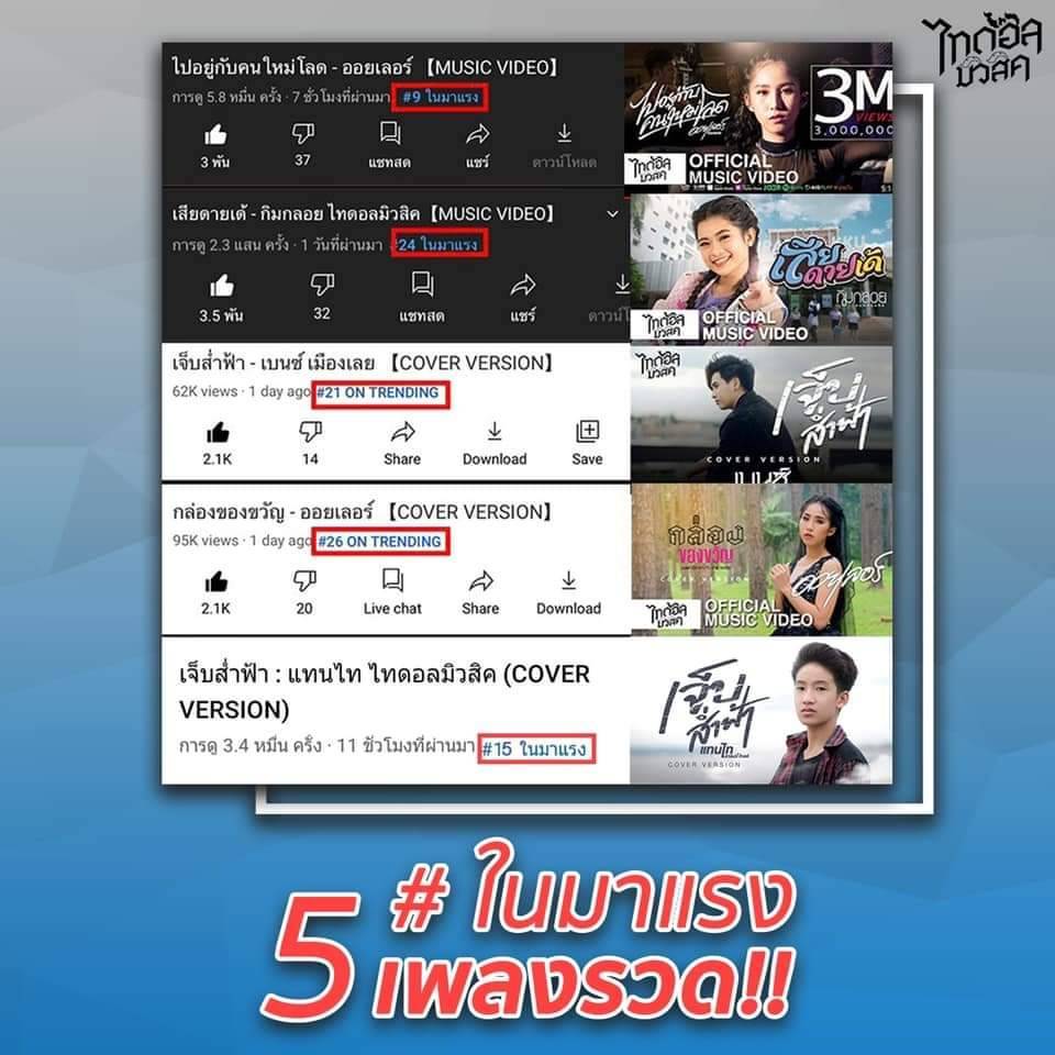 ขึ้นเทรนด์ไม่หยุด!!! “ไทดอลมิวสิค” ส่งเพลงไหนก็โดน #ในมาแรง 5 เพลงรวด