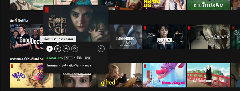- บนเบราเซอร์: คลิกไปที่เครื่องหมายบวก เพียงเท่านี้หนัง-ซีรีส์ที่เราชอบก็จะถูกเพิ่มเข้าไปในรายการของเราแล้ว
