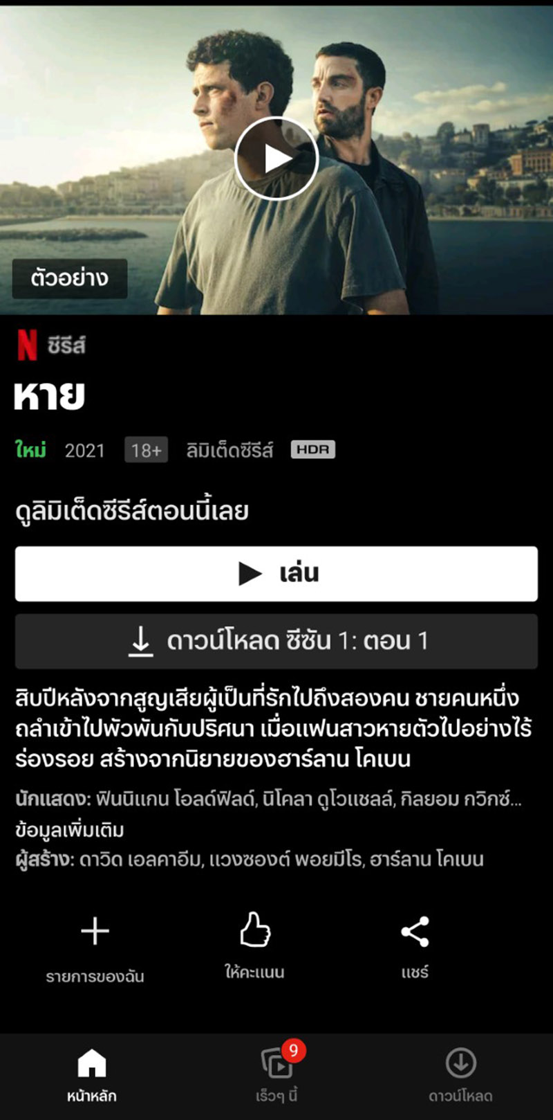 - บนมือถือ: สำหรับแอนดรอยด์ เลือกหนัง-ซีรีส์ที่ต้องการ จากนั้นกด “ตอนและข้อมูล” (สำหรับซีรีส์) หรือ “รายละเอียดและอื่นๆ” (สำหรับภาพยนตร์) ก็จะพบกับเครื่องหมายบวกให้กดเพิ่มเรื่องนั้นๆใน “รายการของฉัน” สำหรับดีไวซ์ iOS นั้น เมื่อได้เรื่องที่ต้องการแล้ว ก็กดที่เครื่องหมายบวกได้เลย
