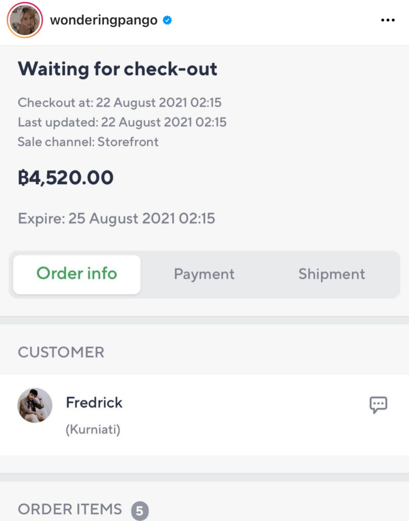 “และความพีคคือก่อนหน้านั้น คนๆ นี้ ก็ทักมาซื้อของที่ร้านเรา ทาง Line Shop เหมือนกัน แต่ยังไม่มีการส่งสลิปมาใดๆ (อาจจะแค่มาเอาชื่อบัญชี) ตอนนี้ไม่รู้ว่านางเอาสลิปปลอมไปซื้อของที่ไหนอีก ยังไงใครเจอฝากบอกหน่อยนะส่วนเรื่องจะแจ้งความกำลังสอบถาม ดำเนินการอยู่ค่า รูปสุดท้ายที่เค้าทักเรามาว่า order มาใน Line shop ค่ะ ความบังเอิญหรือตั้งใจเนี้ย