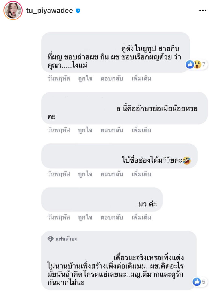ซึ่งงานนี้ทำเอาชาวเน็ตต่างคอมเมนต์สนุกมือคาดเดากันว่าเป็นใครนะ จนหวยไปออกที่คู่ของสาว ตู่ ปิยวดี กับ สามีหนุ่ม มาวิน