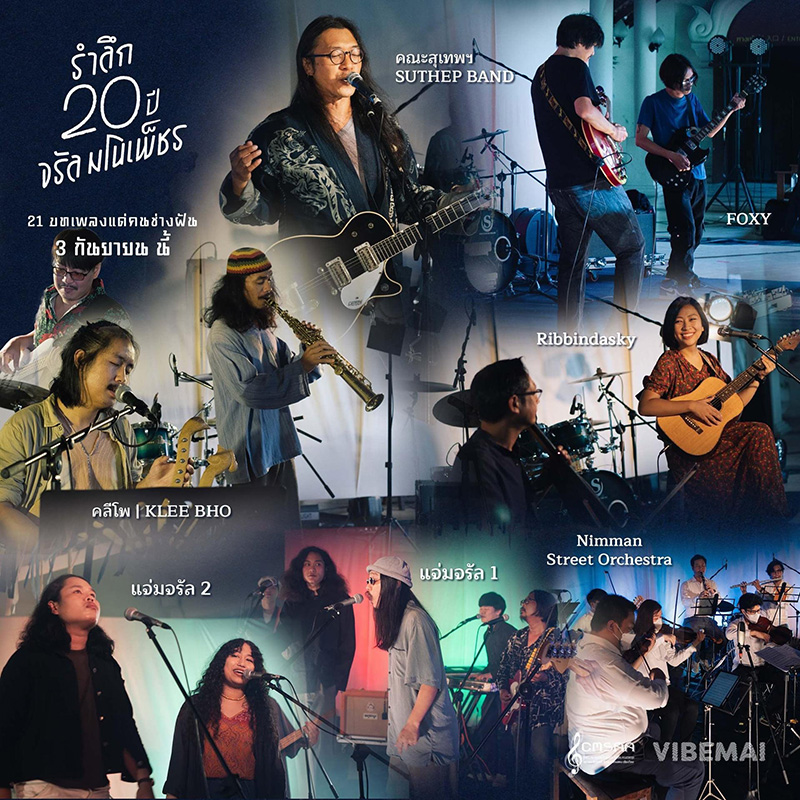 วงดนตรีเชียงใหม่ 20 วงที่ร่วมกับกิจกรรม รำลึก 20 ปีจรัล มโนเพ็ชร “21 บทเพลงคนช่างฝัน” ได้แก่ กลางกะกุ๊ก (Klang Fanclub) | บอย Imagine’s House | เขียนไขและวานิช & เรืองฤทธิ์ บุญรอด | VELS. จาก (MINIMAL RECORD) | SIRIMONGKOL (MINIMAL RECORD) | สภาพสุภาพ (MINIMAL RECORD) | Sleeper 1 | วงคูเมือง-Crew Murng | THE OPPOSITE BAND | FOLK JAMM โฟล์คแจม จิตปรุงแต่ง ในชื่อวงพิเศษ แจ่มจรัล 1 & 2 | Moment’s Notice Jazz | KLEE BHO | RibbindaSky | Nimman Street Orchestra | Recap | SUTHEP BAND : คณะสุเทพฯ | FOXY | สนิมหยก SANIM YOK | Chiangmai BLUES และโชว์พิเศษที่ได้แขกรับเชิญคนสำคัญอย่าง ‘ตุ๊ก – วัชระ เจริญพร’ (ตุ๊ก Brasserie) ที่มาร่วมบรรเลงในครั้งนี้ด้วย