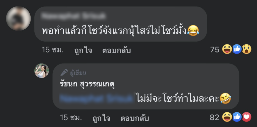 เจนนี่ ได้หมดถ้าสดชื่น เมื่อได้เห็นคอมเมนต์ดังกล่าวก็ไม่เมินเฉย ตอบกลับแซ่บๆเบาๆไปอย่างมีเหตุผลว่า “ไม่มีจะโชว์ทำไมล่ะคะ”, “แค่ใหญ่กว่าเก่าก็โอเคละค่ะ”