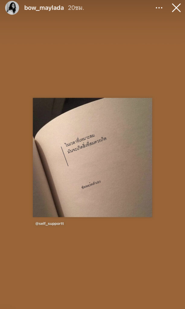 ล่าสุดเหมือนแฟนคลับจะพอมีหวังแล้ว เมื่อหนุ่ม มิกค์ได้กลับมากดฟอลโล่ไอจีสาวโบว์อีกครั้ง และเวลาต่อมาสาวโบว์ได้โพสต์รูปหนังสือที่มีข้อความว่า“ในเวลาที่เหมาะสม มันจะเกิดสิ่งที่สมควรเกิด” เอ๊ะยังไง งานนี้แฟนคลับก็รอลุ้นกันต่อไปว่าทั้งคู่จะกลับมารีเทิร์นกันหรือไหม