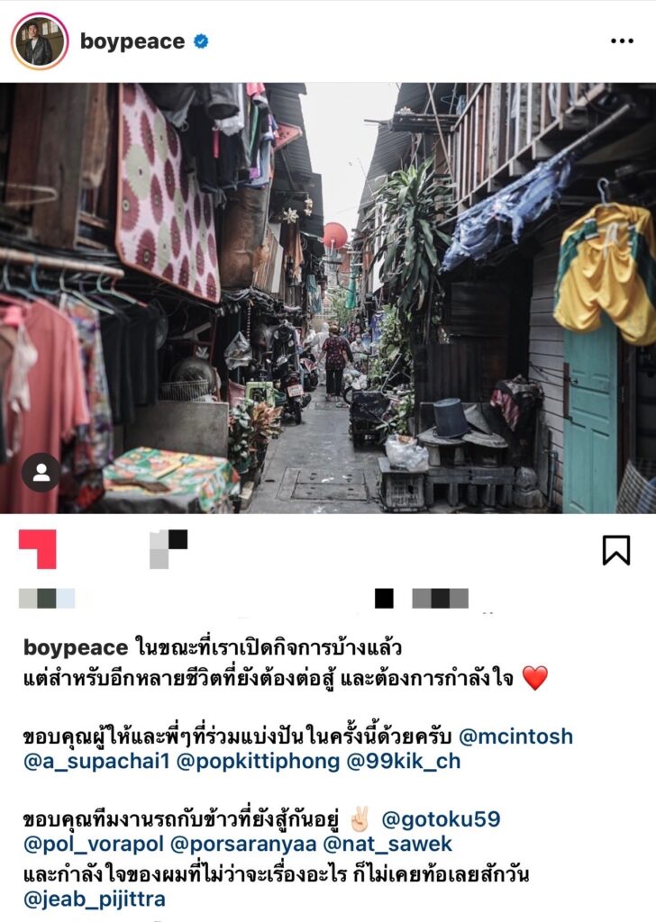 ซึ่งตอนนี้ที่ทุกคนได้รับความเดือดร้อนจากโควิด – 19 ทั้ง บอย & เจี๊ยบ ก็ลุกขึ้นช่วยเหลือทันทีโดยไม่หวังผลใดๆของแค่ให้ได้ช่วยตอบแทนน้ำใจของทุกคนเท่านั้นก็เพียงพอ งานนี้ หนุ่มบอย ยังได้โพสต์ให้กำลังใจทุกคนที่ต้องสู้ผ่านอินสตราแกรมส่วนตัวมาด้วยว่า