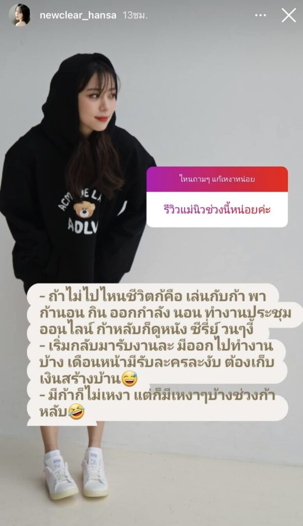 อยากให้แม่นิว รีวิวชีวิตของตัวเองในช่วงนี้หน่อย โดยเธอก็ได้ตอบว่า