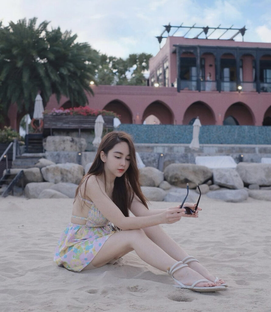 ด้วยการนุ่งวันพีชคล้องคอสีเขียวเหนี่ยวทรัพย์ลายผลไม้แหวกด้านข้างโชว์สัดส่วนสุดปัง อวดอึ๋มตู้มเต็มตา ที่หนุ่มๆเห็นต้องตะลึงตาค้างกันเป็นแถว เพิ่มออร่ากลางแดดด้วยผิวขาวโอโม่สุดๆซึ่งงานนี้ถูกอกถูกใจแฟนคลับหนุ่มๆหนักมากเข้ามากดหัวใจรั่วๆพร้อมยังชมว่าแซ่บมากแม่