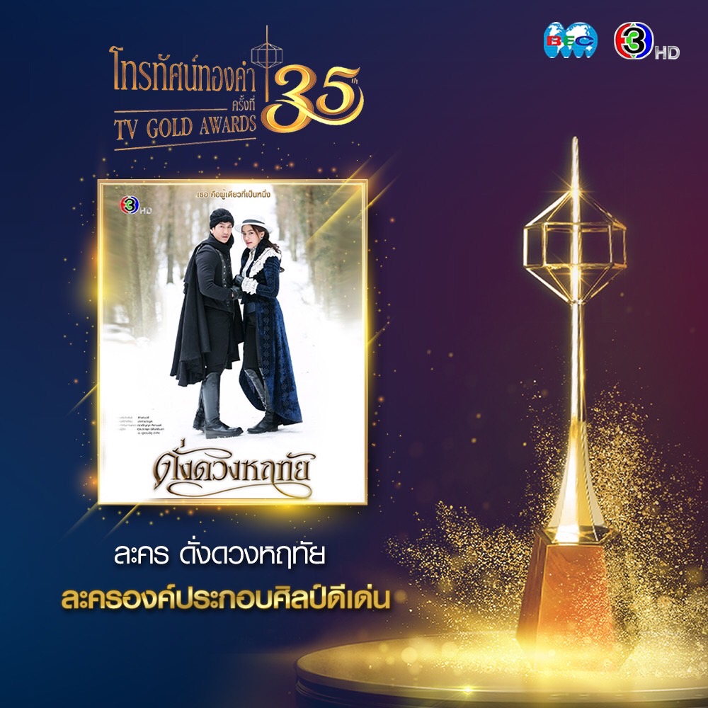 ช่อง 3 “หน่อย บุษกร” คว้าสนับสนุนหญิงดีเด่น และ ดั่งดวงหฤทัย องค์ประกอบศิลป์ดีเด่น โทรทัศน์ทองคำ ครั้งที่ 35