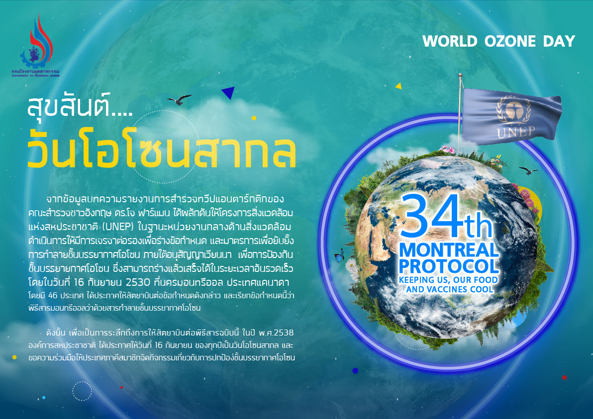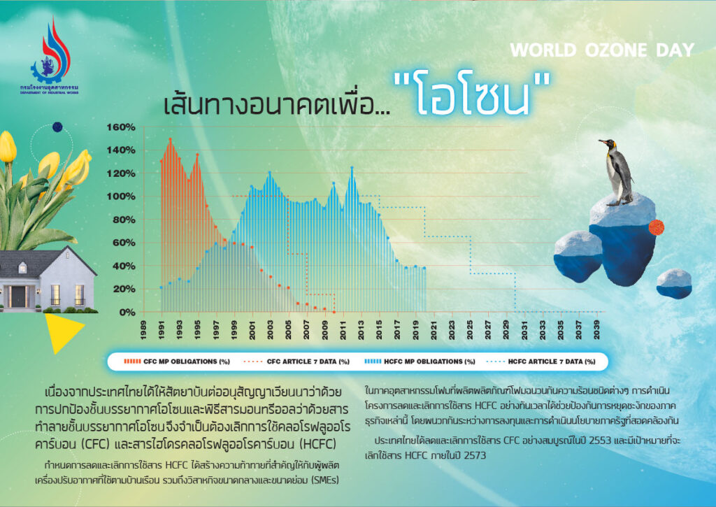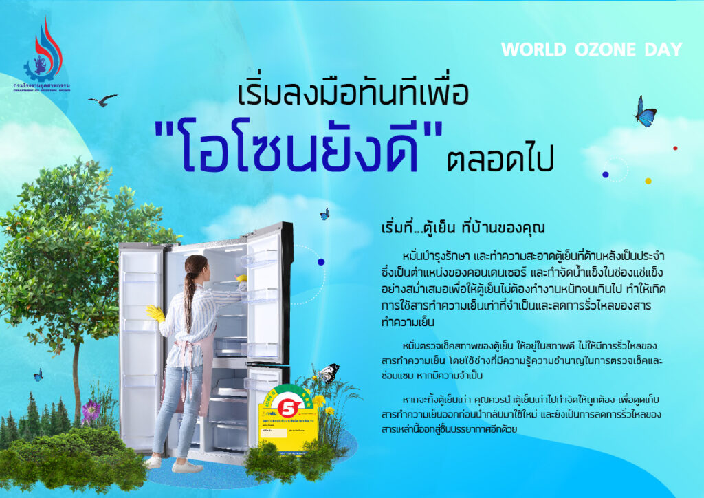 กรมโรงงานอุตสาหกรรม กระทรวงอุตสาหกรรม เดินหน้าสานต่อกิจกรรมห่วงใยโอโซน ในวันโอโซนสากลประจำปี 2564 จัดโครงการ “โอโซนดี ชีวิตก็ดี” รวมพลังคนไทย ลดเลิกใช้สาร HCFC ซึ่งเป็นการรณรงค์ให้ประชาชนทั่วไปตระหนักถึงความสำคัญของชั้นบรรยากาศโอโซน ที่ทำหน้าที่ปกป้องโลก และสภาพภูมิอากาศโลก พร้อมเชิญชวนให้ทุกคนหันมาดูแลเครื่องใช้ไฟฟ้าใกล้ตัวที่ยังมีสารทำความเย็นอยู่ในอุปกรณ์ เช่น เครื่องปรับอากาศ ตู้เย็น ทุกคนสามารถช่วยเหลือโลกได้ โดยเริ่มต้นที่ตัวเรา ผ่านการหมั่นดูแลตรวจเช็คสภาพการใช้งาน ตลอดจนทำความสะอาด ปิดเมื่อไม่ใช้ นับเป็นการใช้สารทำความเย็นเท่าที่จำเป็น เพื่อร่วมกันป้องกันและแก้ไขปัญหาสิ่งแวดล้อมระดับโลก