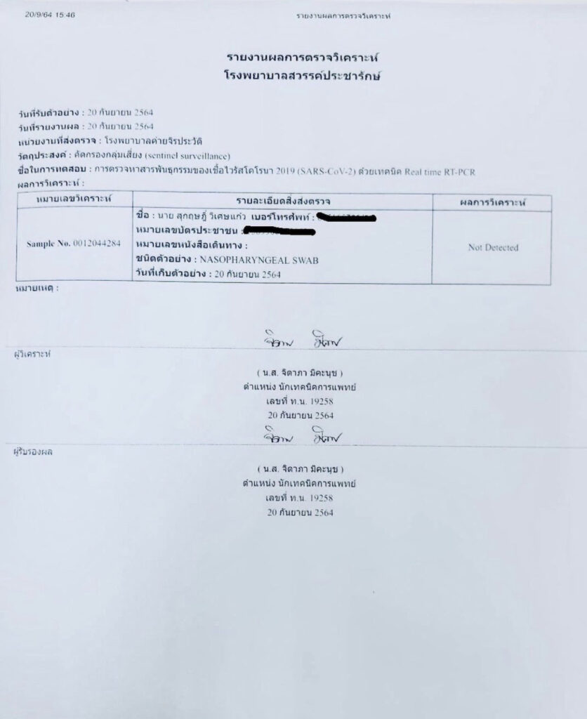 “ไปเจอท่านผอ.โรงพยาบาลแม่สอดวันที่ 07กย. และวันนี้20กย. ก็ครบ14วันพอดี มาตรวจแล้ว ปลอดภัยคับ. ปล. สาวๆมาชวนเที่ยวได้แล้วนะคับ 😁“