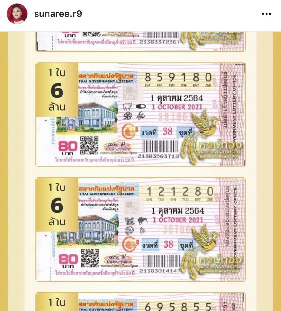 เริ่มต้นด้วย เจ้าแม่ไบ้หายที่แฟนคลับตามส่องทุกงวด สำหรับนักร้องรุ่นใหญ่ สุนารี ราชสีมา งวดนี้ก็ไม่ทำให้คอหวยผิดหวัง เมื่อนักร้อง สุนารี ได้ออกมาโพสต์รูปฟาดเคราะห์หลังรถป้ายแดงของตน ไปจิ้มตูดกับรถของคนอื่นเข้า ทำเอาเหล่าคอหวยต่างพากันแห่เข้ามาซูมเลขทะเบียนของเธอ จึงได้ทราบเลขทะเบียนรถคือ ส-8980 แค่นั้นยังไม่พอ เจ้าตัวยังออกมาโพสต์รูปซื้อลอตเตอรี่เลขท้าย80 กับ 25 จำนวนหลายใบ