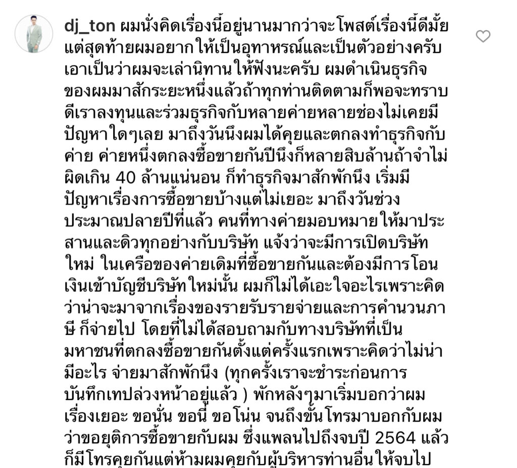 ทั้งนี้เจ้าตัวยังเผยอีกว่า พร้อมให้สัมภาษณ์ทุกสื่อ เพื่อเป็นอุทาหรณ์สำหรับการทำธุรกิจสื่อโฆษณา และรู้ทันการฉ้อโกงในการทำธุรกิจ ซึ่งงานนนี้ก็มีแฟนคลับเข้ามาส่งกำลังใจให้ดีเจต้นพร้อมให้เอาเรื่องให้ถึงที่สุด