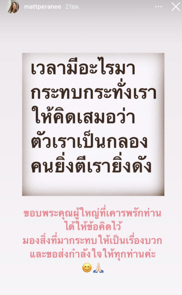 คิดบวก! นักแสดงสาวสุดสตรอง“แมท ภีรนีย์” โพสต์ข้อคิด เราเป็นกลอง คนยิ่งตี ยิ่งดัง ลั่นขอบคุณผู้ใหญ่ที่เคารพรัก