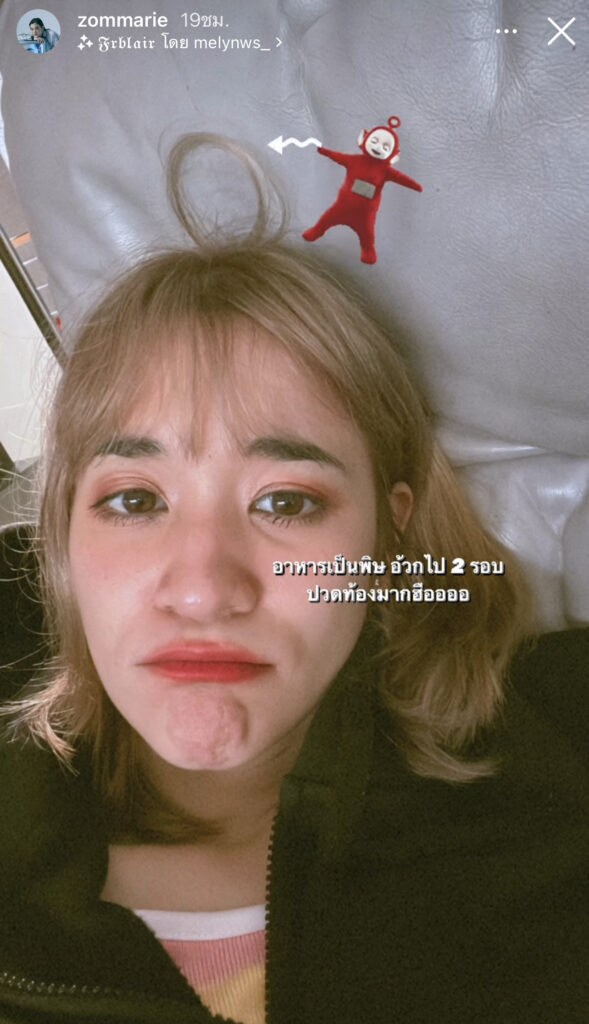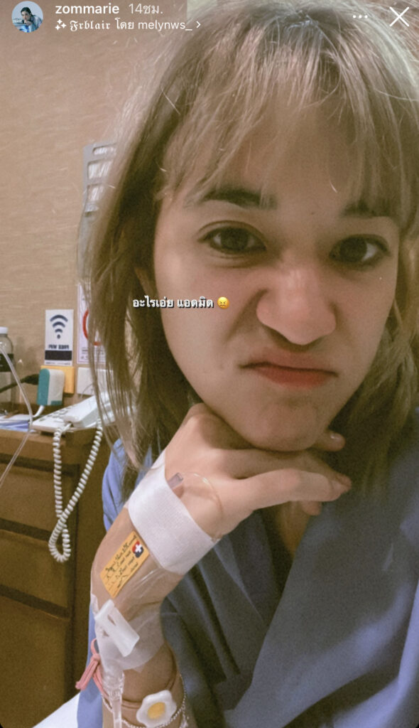 ทำเอาแฟนคลับอดเป็นห่วงไม่ไหว เมื่อนักร้องเสียงใส “ส้ม มารี“ได้โพสต์ภาพลงไอจีสตอรี่ขณะนอนแอดมิทที่โรงพยาบาล เนื่องจากอาหารเป็นพิษอาเจียนไป2รอบ ปวดท้องหนักมาก โดยหมอคาดว่าน่าจะเป็น กระเพาะอักเสบ โดยล่าสุด “ส้ม มารี“หวั่นแฟนคลับจะเป็นห่วงหนักมาก รีบออกมาอัพเดทอาการโพสต์ภาพพร้อมแคปชั่นว่า