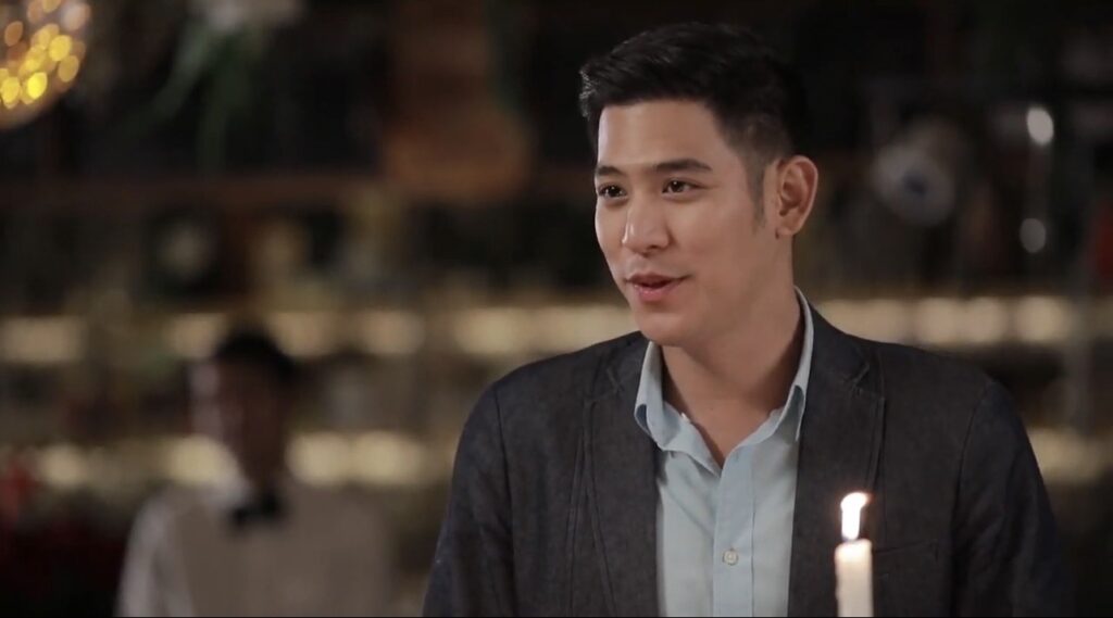 สำหรับฉากนี้ยกกองไปปักหลักถ่ายกันที่ร้านอาหารหรู ผู้กำกับติ๊ก วศินี คุณะนิติสาร เพียงบรีฟจังหวะเล็กน้อยให้กับ แซมมี่ เคาวเวลล์ , พุฒ พุฒิชัย , พอร์ช ศรัณย์ ก็จัดกันชุดใหญ่ ตั้งแต่ความสวีทหวานที่ พุฒ บรรจงทำเซอร์ไพรส์ให้กับ แซมมี่ ด้วยเค้กก้อนเล็กแต่เต็มไปด้วยความรัก แต่ พอร์ช ก็ยกเค้กก้อนโตมาโชว์ความเหนือกว่าข่ม พุฒ ซึ่งในฉากนี้ต้องยกนิ้วให้กับ แซมมี่ ที่ต้องปรับเปลี่ยนอารมณ์ยิ่งกว่ากดสวิตช์ไฟแต่ก็ผ่านไปได้อย่างฉลุย
