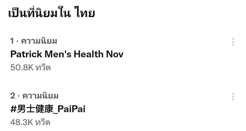 ซึ่งครั้งนี้ถือเป็นการถ่ายแบบขึ้นปกนิตยสารแรกของ “แพทริค” และสำหรับการวางแผงของนิตยสารเล่มนี้ ต้องบอกเลยว่า เปิดจองเพียงแค่ไม่กี่นาทียอดสั่งซื้อก็ทะลุ 20,000 เล่ม หมดในเวลาอันรวดเร็ว ถือเป็นการฉลองการข้ึนปกครั้งแรกของ “แพทริค” อย่างสวยงามเลย ส่งผลให้ #PatrickMen’sHealthNov และ #男士健康_PaiPai ติดเทรนด์ในอันดับ1 และ 2 ตั้งแต่ช่วงเช้าที่ผ่านมา