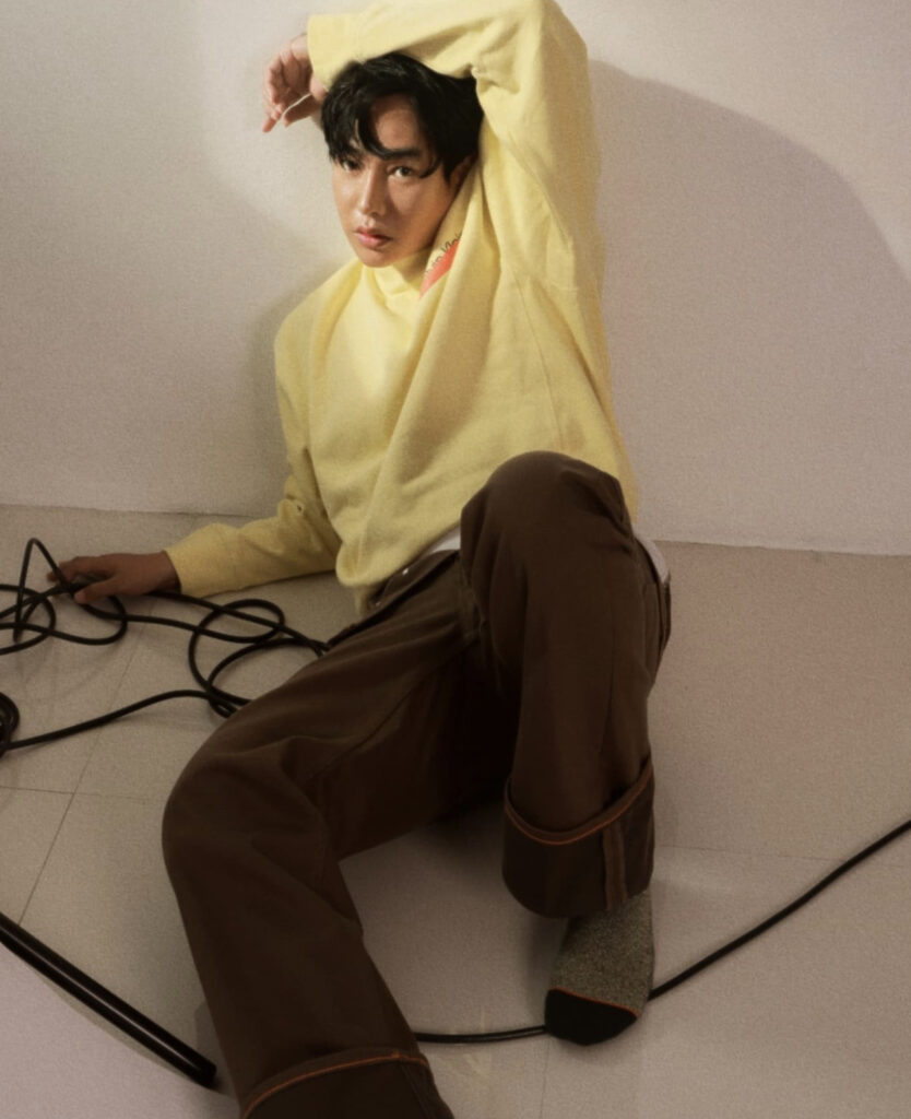 โดยมาในชุดเท่ห์ๆ เกาหลีหน่อยๆ มาในเสื้อแขนยาวสีเหลือง เสิร์ฟคู่กางเกงสีน้ำตาล แต่ที่ทำเอาฮือฮาชาวเน็ตแห่ซูมก็ตรงที่หนุ่มเป๊ก ปลดกางเกงตัวนอกลงมา โชว์กางเกงข้างในขาสั้นสีขาวสุดแซ่บ อวดขาอ่อนเบาๆ พร้อมโพสท่าสุดเท่ห์ บอกได้คำเดียวว่าถ้าเห็นต้องซู้ดปากเป็นแถว ซึ่งบอกเลยลุคนี้ ทั้งน่ารัก ทั้งหล่อ ทั้งเทห์ และแซ่บ หลงตัวสุดๆ ทำเอานุชทั่วประเทศใจละลายกันเป็นแถว