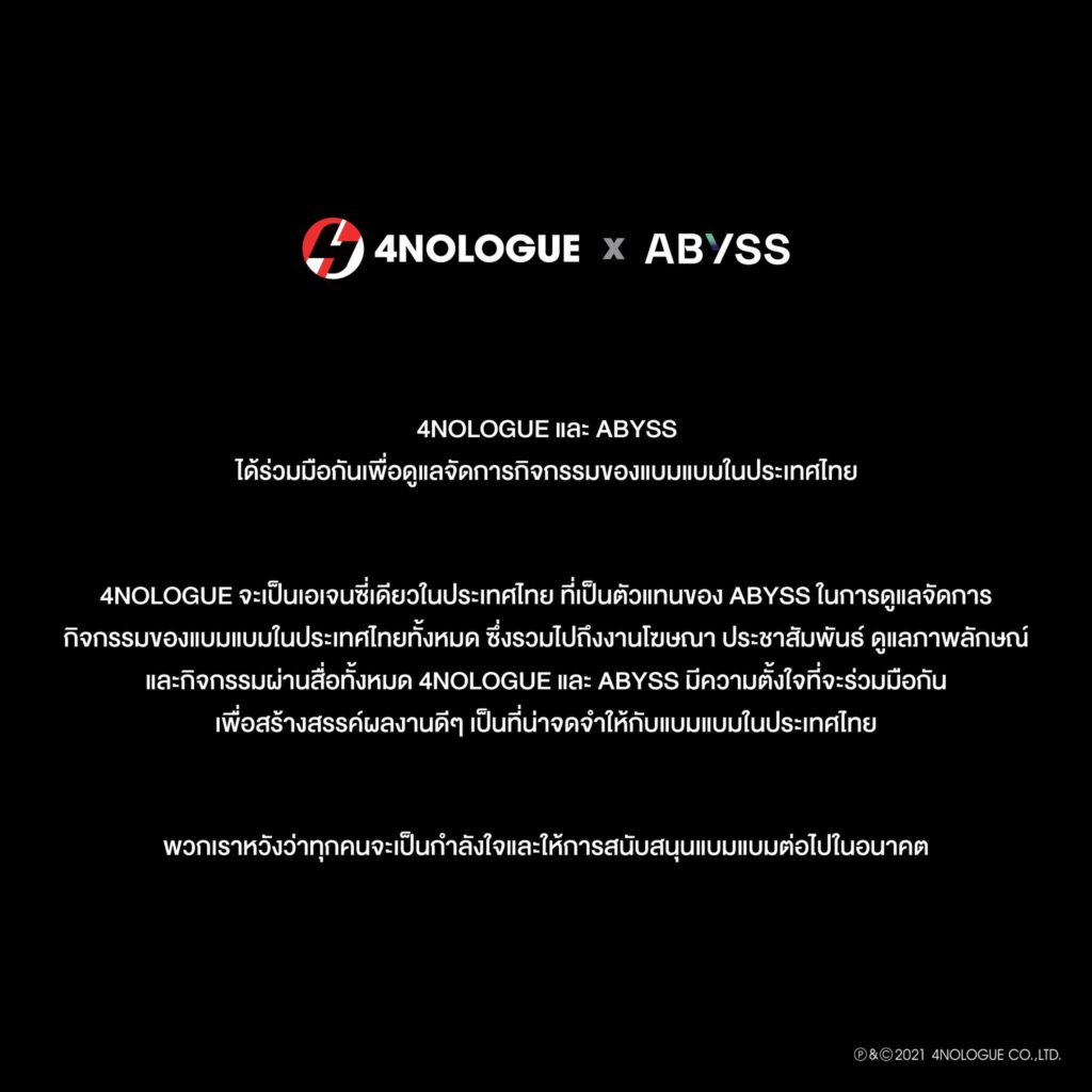 ล่าสุด 4NOLOGUE บริษัทธุรกิจบันเทิงชื่อดังในประเทศไทย ประกาศความร่วมมือกับ ABYSS Company ต้นสังกัดในเกาหลีของหนุ่ม แบมแบม เพื่อเป็น Exclusive Agency เพียงเจ้าเดียวที่จะช่วยดูแลกิจกรรมและงานทั้งหมดของ แบมแบม ในประเทศไทย