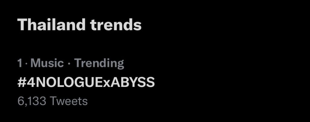 งานนี้แฟนๆร่วมฮือฮากันว่า แบมแบม คงจะอยู่ไทยไปอีกยาวๆแน่นอน และเป็นที่พูดถึงในแฮชแท็ก #4NOLOGUExABYSS จนติดเทรนด์ทวิตเตอร์อันดับหนึ่งในไทยไปเรียบร้อย งานนี้แฟนคลับร่วมลุ้นว่าจะมีอะไรพิเศษจาก แบมแบม เพิ่มเติมหรือไม่