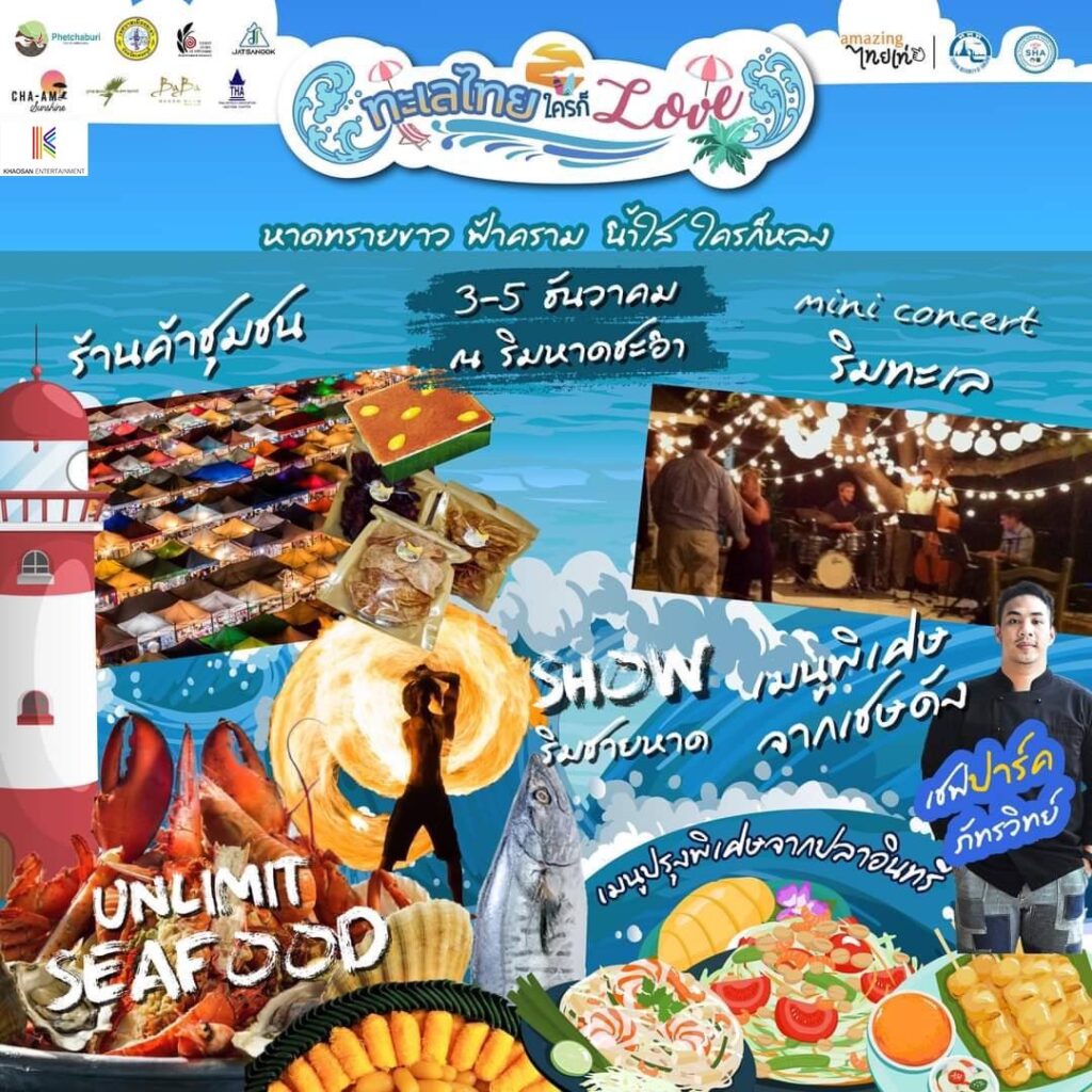 “ทะเลไทย ใครก็ LOVE” ชวนทุกท่านมาร่วมสัมผัสวัฒนธรรมผ่านการแสดงสนุกสนาน ช้อปปิ้งสินค้าชุมชน อาหารรสเลิศและของหวานขึ้นชื่อเมืองเพชร ในบรรยากาศสุดชิวริมทะเล พร้อมกับฟรีคอนเสิร์ตจากศิลปินชื่อดังและการยกอาหารทะเลขึ้นบก นำทัพความอร่อยจากเชฟชื่อดัง และเอาใจสาย Surf Skateริมหาดแบบปลอดภัย 3-5 ธันวาคมนี้ เข้าชมฟรีตลอดงาน!!