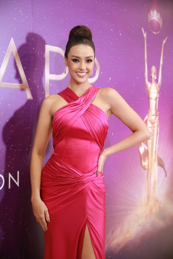 -รางวัล Best in Cocktail dress รับเงินรางวัล 2,000 บาท พร้อมสายสะพาย คือหมายเลข 1 ชฎาพิชญ์ รุ่งเรือง