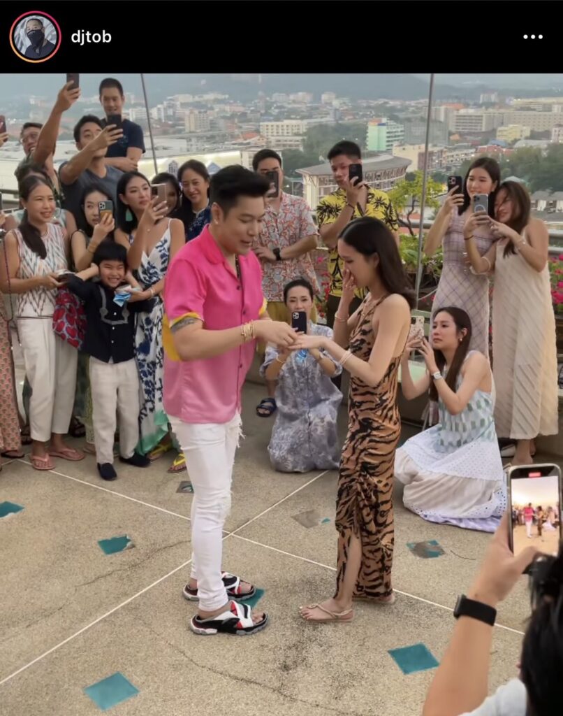 โดยในอินสตาแกรมของ “djtob” ได้เผยโมเมนต์ที่หนุ่ม “ก้อง กรุณ” สวมแหวนให้ “ปราง” พร้อมแคปชั่น “Yesssss you did it bro!! @kongkaroon @p_apinara Congratulations kub” งานนี้ทำเอาว่าที่เจ้าสาวดีใจจนกลั้นน้ำตาไม่อยู่เลยทีเดียว ซึ่งก็มีเพื่อนๆในวงการบันเทิง รวมถึง แฟนคลับแห่เข้ามาคอมเมนต์แสดงความยินดีกับว่าที่เจ้าบ่าว เจ้าสาว อย่างล้นหลามเลยทีเดียว