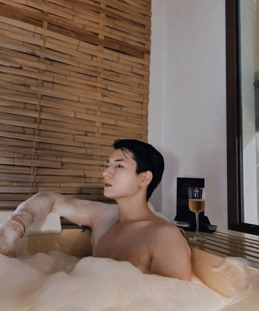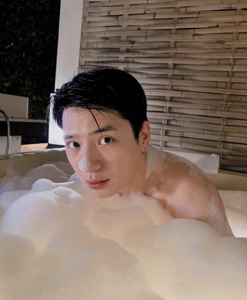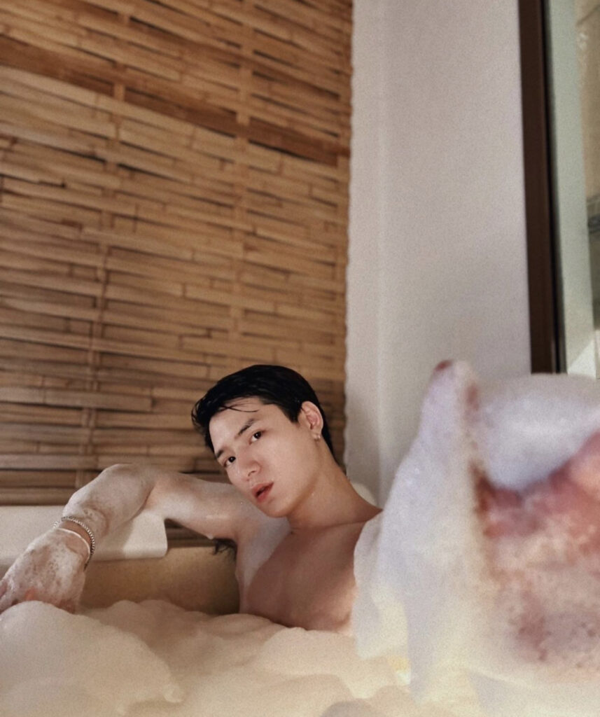 โดยเจ้าตัวฟาดลุคเปลือยท่อนบนลงอ่างแช่น้ำ ฟองสบู่ปกปิดท่อนล่างสุดแซ่บ โชว์ผิวพรรณขาวนวลเนียนเซ็กซี่เกินต้าน โพสท่าซิกๆอินเนอร์ความหล่อเท่ทะลุฟองออกมาเลยทีเดียวแหมๆอวดท่อนบนแบบนี้ทำเอาอยากซูมเห็นท่อนล่างกันถล่ม ซึ่งงานนี้ถูกใจแฟนคลับหนักหน่วงรีบเข้ามาขย่มยอดไลน์พร้อมแซวว่าแซ่บจริงไม่อิงนิยาย