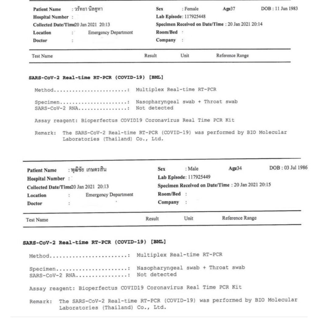 ล่าสุดเจ้าตัวก็ได้โพสต์รูปเอกสารผลการตรวจพร้อมแคปชั่นว่าจากที่ผมได้จัดรายการเจอมะตูมเมื่อวันที่8ม.ค. แต่มะตูมคาดว่ารับเชื้อวันที่9 ม.ค. ผมไม่ได้เจอมะตูมมา13 วันละครับตอนนี้ และได้พาคุณจุ๋ยไปตรวจหาเชื้อมาเมื่อคืนที่รพ. ผลออกละครับเป็นลบทั้งหมด พวกเราไม่พบเชื้อโควิด-19 นะครับ ขอบคุณทุกคนที่เป็นห่วง ดูแลสุขภาพกันนะครับ 🙏🏻❤️