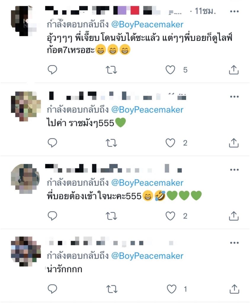 ซึ่งเมื่อสามี “บอย อนุวัฒน์” ได้เห็นคอมเมตต์ดังกล่าวก็ได้แคปข้อความของภรรยามาแซวผ่านทางโซเชียลว่า “จับคนร้ายได้1ราย #เจี๊ยบราชมัง #เจี๊ยบคัมแบคนาว #เจี๊ยบอากาบง” ทำเอาเหล่าอากาเซต่างพร้อมใจกันเข้ามาแซวกันอย่างมากมายว่า จับคนร้ายได้แล้ว, น่ารักอ่ะ, น่าเอ็นดู, พี่บอยก็เข้ามาดูเหมือนกันใช่มั้ยคะ ฯลฯ
