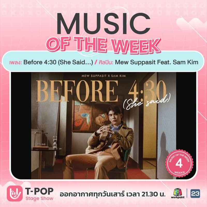 งานนี้ต้องทุบบ้านเพิ่มตู้แล้วมั้ยสำหรับ มิว ศุภศิษฏ์ สุดหล่อขวัญใจชาว Mewlions ที่ครั้งนี้ได้ถ้วยอันดับ 1 Music of the Week เป็นถ้วยที่ 10 แล้วกับเพลง Before 4:30 (She Said…)