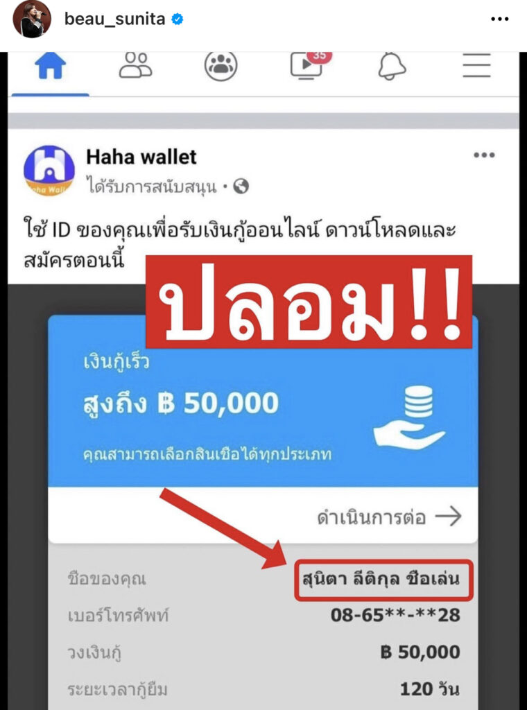 เรียกว่ารีบออกมาเตือนภัยชี้แจงเร่งด่วนสำหรับนักร้องรุ่นใหญ่“โบ สุนิตา“หลังโดนนำชื่อไปแอบอ้างในการกู้เงินออนไลน์ โดยเจ้าได้โพสต์ภาพพร้อมแคปชั่นสุดเด็ดว่า “มีผู้หวังดีส่งภาพนี้มาให้ และญาติๆ ก็ส่งมาให้ แปลว่ามีคนเห็นภาพนี้ไม่มากก็น้อย ทีแรกว่าจะเฉยๆไป แต่มีคนส่งซ้ำมาให้ และได้ปรึกษากับพี่ๆ ทุกคนบอกไม่ควรเฉยนะโบ โบเลยอยากให้เจ้าของภาพซึ่งโบไม่ทราบว่าเป็นใคร