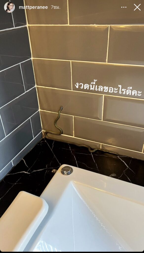 ปิดท้ายกันด้วยนางเอกสาว“แมท ภีรนีย์” เรียกว่าเอากับเขาด้วย เพราะ1เดือนมี2หนเท่านั้น โดยงานนี้สาวแมท ได้ออกมาไบ้หวยผ่านทางไอจีสตอรี่ โดยโพสต์ภาพน้องงูที่เลื่อยเข้ามาในห้องน้ำ พร้อมเขียนข้อความว่า“งวดนี้เลขอะไรดีคะ” แหมๆ งานนี้คอหวยก็ไม่รอช้ารีบเข้ามาส่องมาซูมตีเลขกันสนั่นไอจี ถึงยังไงก็ใช้วิจารณญาณในการซื้อด้วยนะคะ