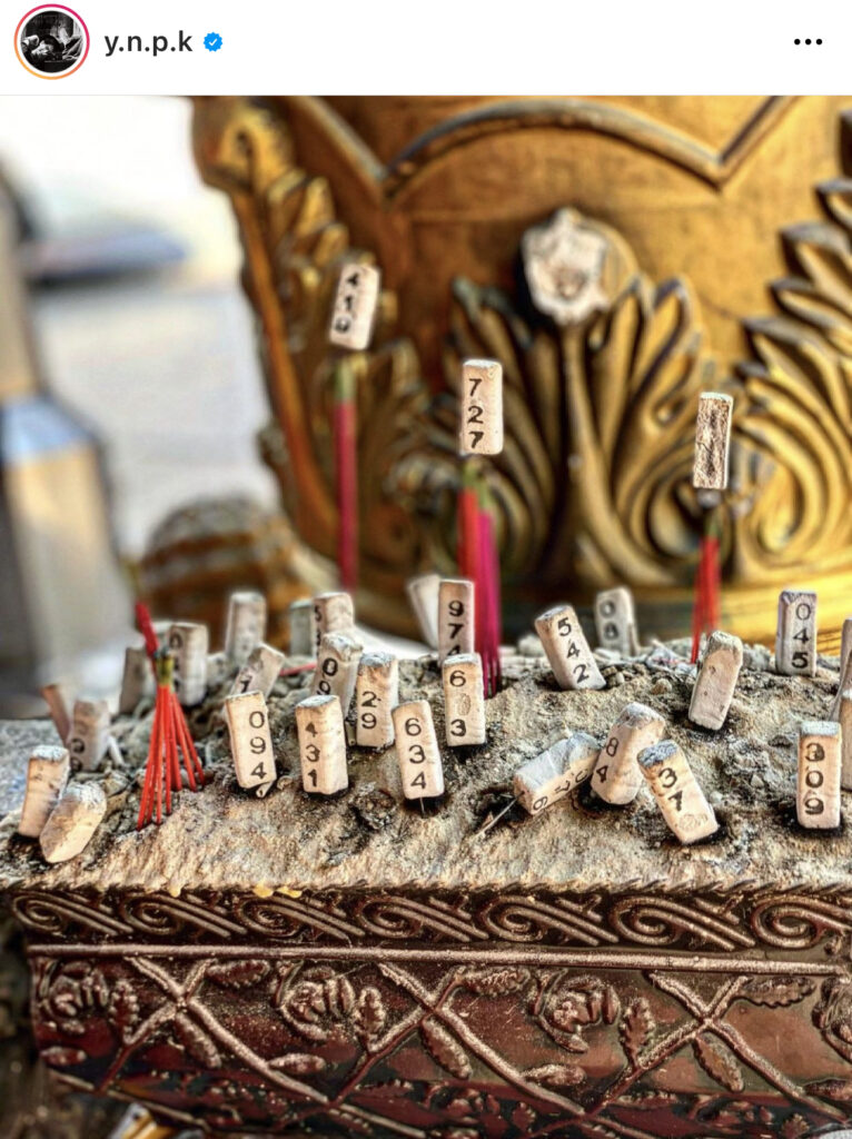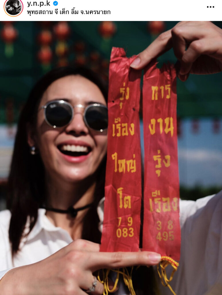 เริ่มต้นกันด้วยนักแสดงหนุ่ม“ตูมตาม ยุทธนา“เป็นอีกคนดังที่นานๆทีจะออกมาเสี่ยงโชคและให้โชคแฟนคลับโดยเจ้าตัวได้ภาพจากกิจกรรมไหว้เจ้า ทำบุญที่ได้ควงหวานใจอย่าง“อาหลี” และครอบครัว ซึ่งหนึ่งในภาพจากทริปดังกล่าวคือภาพที่หวานใจ “อาหลี” ได้หยิบริ้วผ้ามงคลที่ผูกติดกับประทัด โดยมีข้อความในริ้วผ้าดังกล่าวว่า “รุ่ง เรือง ใหญ่โต การ งาน รุ่ง เรือง ทั้งนี้ยังเลขเด็ดทิ้งท้ายให้คอหวยทั้งหลายต่างแห่ซูมนั่นคือเลข 79 803 83 495″ พร้อมแคปชั่นบอกว่า “ดูกันเอาเองนะครับ” ทั้งนี้เจ้าตัวยังได้โพสต์เลขธูป ที่หลากหลายเลขมากมาย โดยเขียนแคปชั่นว่า“เลือกเอา“