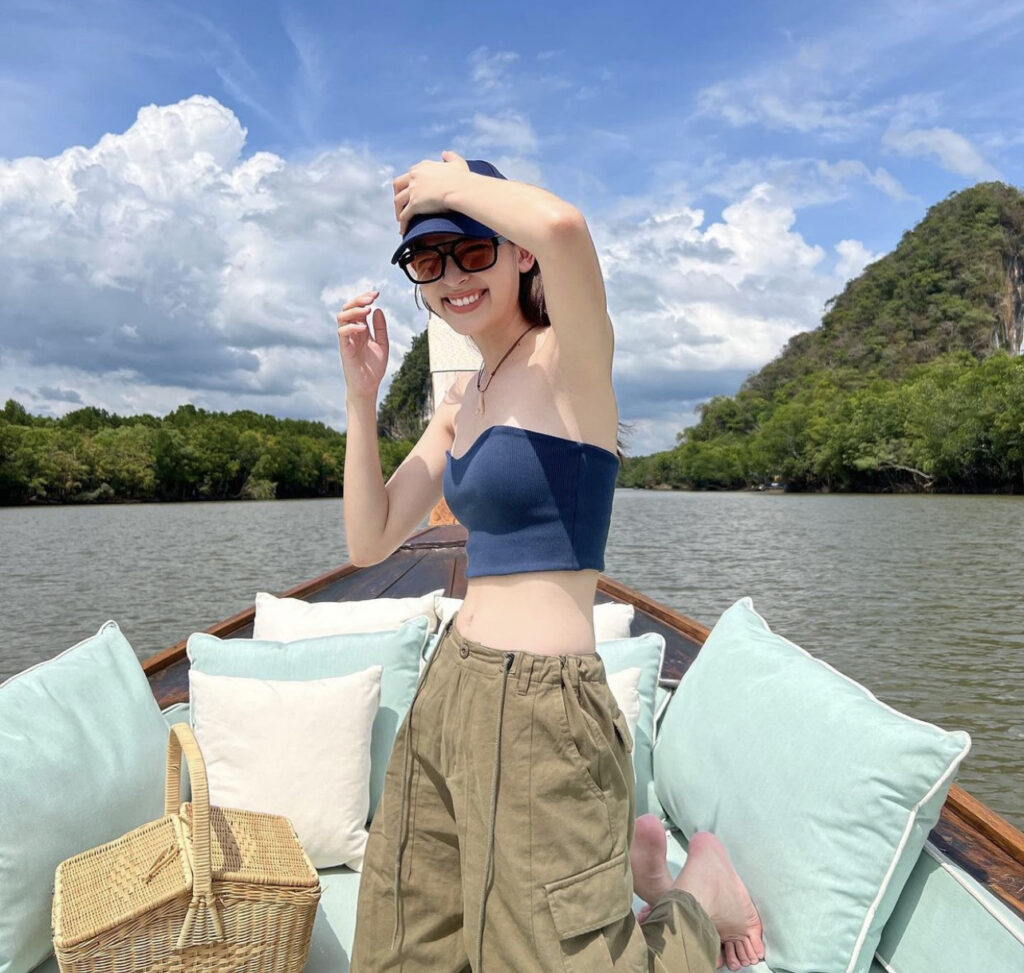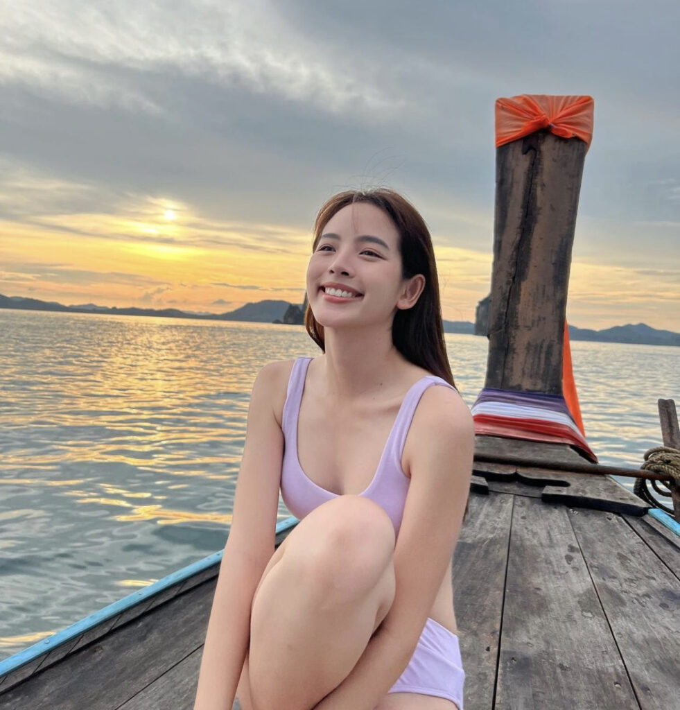 โดยมาลุคบิกินี่สีม่วงสดใสอยู่บนเรือกลางทะเล อวดผิวพรรณขาวอออร่า เปิดร่องหน้าอกหน้าใจเบาๆ โชว์บอดี้สัดส่วนสุดเป๊ะปัง หน้าท้องแบบราบเนียนใส โพสท่าแจกรอยยิ้ม ที่ทำเอาใครมองก็ต้องหลงรัก เรียกว่าทั้งแซ่บ ทั้งเผ็ด แถมยังปนความน่ารักไปอีก ทำเอาชาวเน็ตต่างพากันเข้ามาขย่มยอดไลค์ให้แบบถล่มถลายเลยจ้า